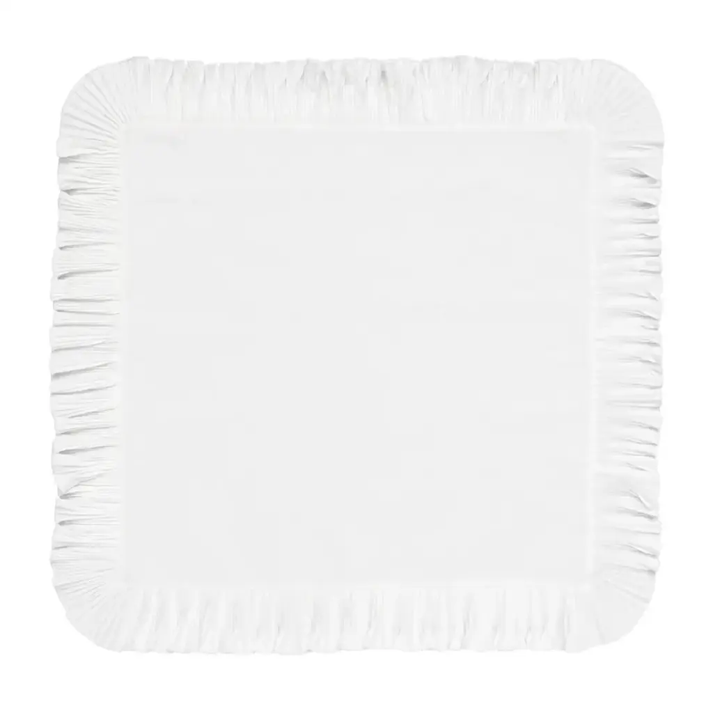 From our Linens Collection - Ridiculously feminine and irresistibly pretty, our knife pleat ruffle festoons this crisp Mademoiselle napkin. Based in Connecticut, Juliska is committed to bringing elegant European design into our modern homes. Since its founding in 2001, when David and Capucine Gooding began by working with artisans outside of Prague to reproduce antique Bohemian glass pieces, every piece from Juliska has shared a rich heritage spanning six centuries of European design. Juliska's creations are timeless, romantic and effortlessly chic.