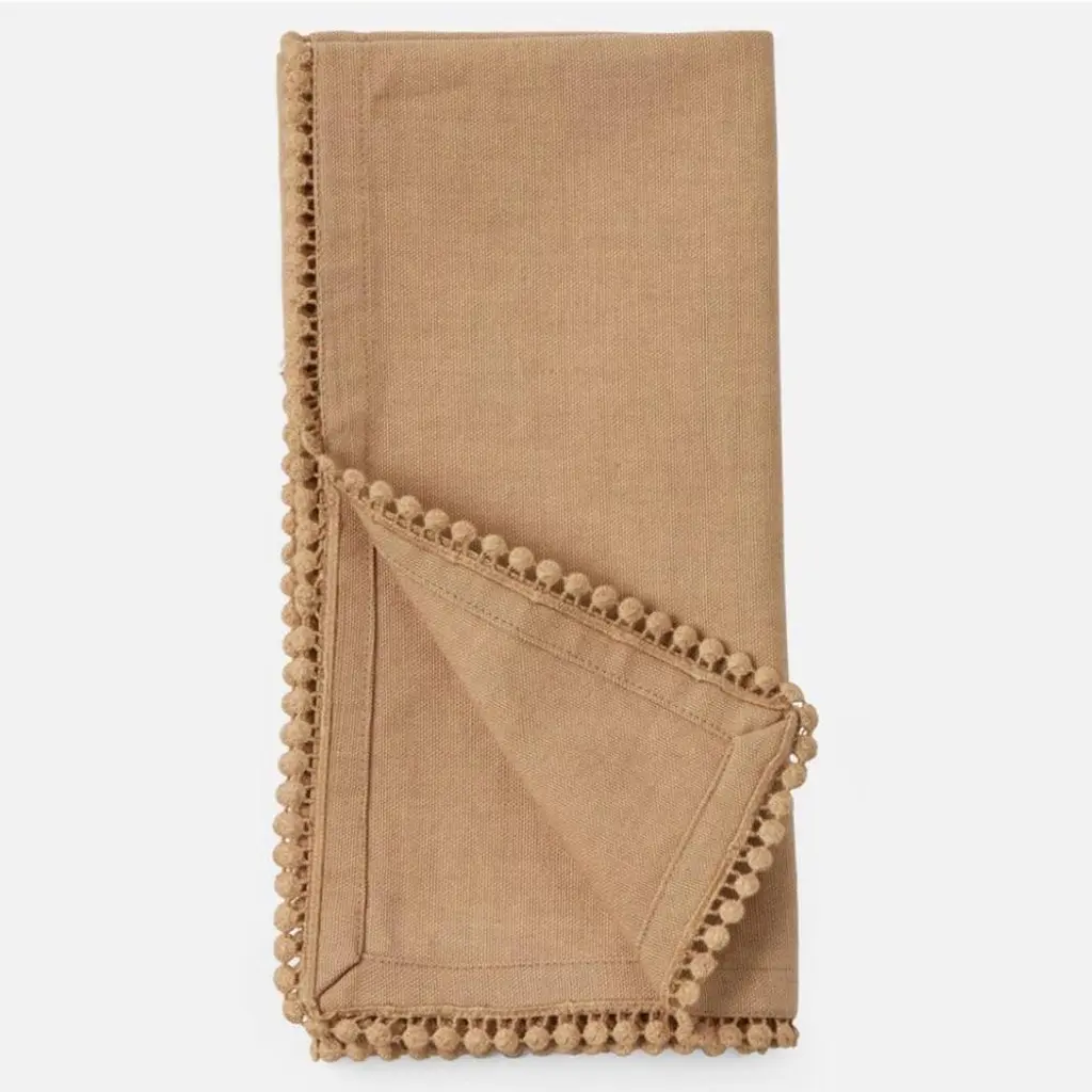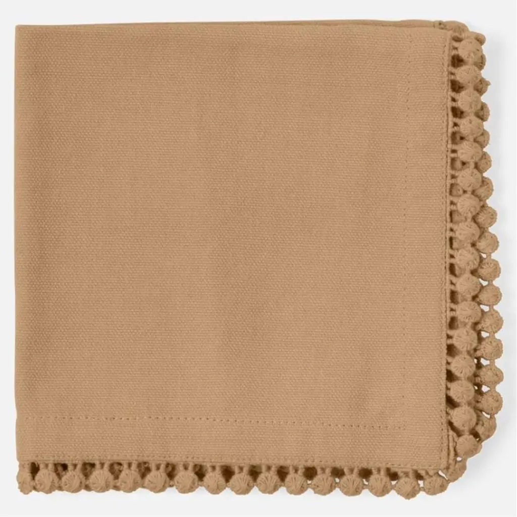 Margot Rustic Beige Cotton Pom Pom Border Cocktail Napkin - Set Of 4