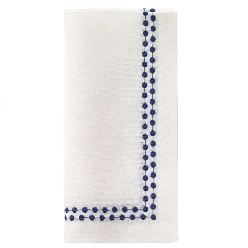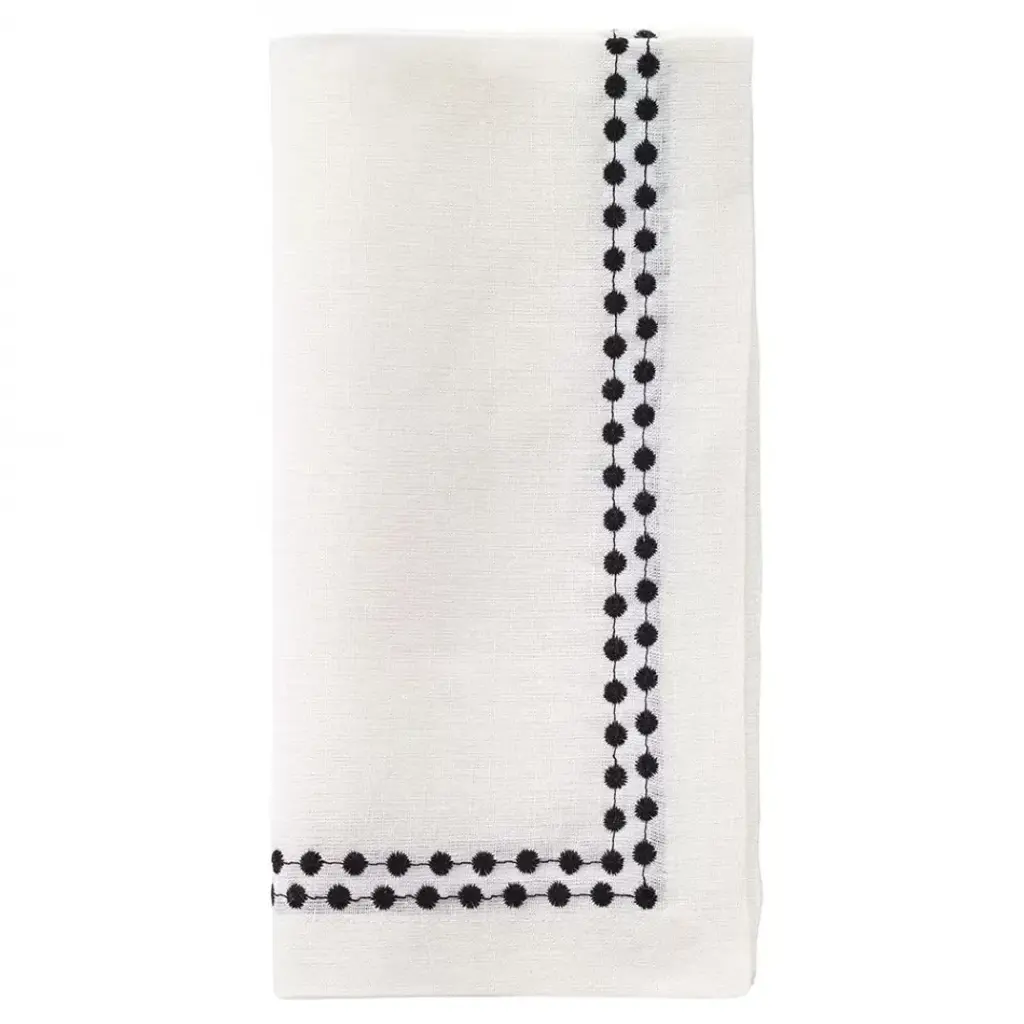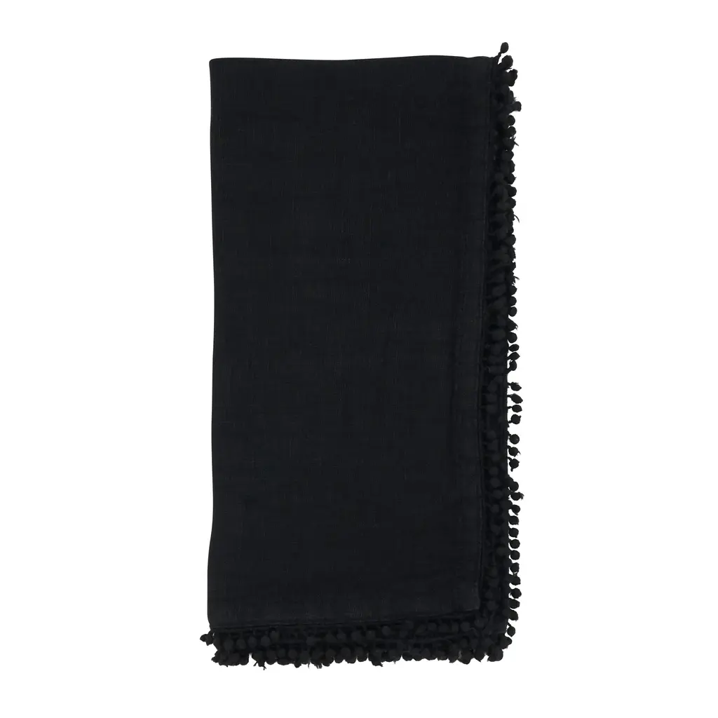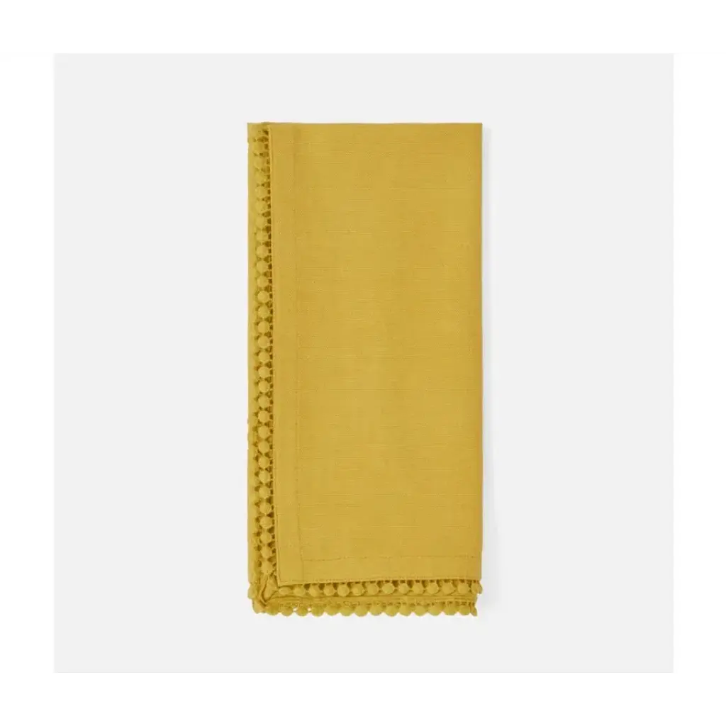 Margot White, Pom Pom Border, Napkin, Cotton Canvas, 22x22, Pack Of 4