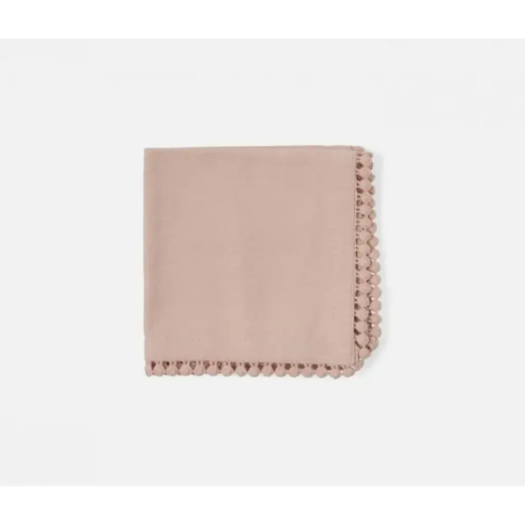Our Margot napkins add feminine flair to any party. Make luncheons lovelier and cocktail hours cooler with the pom pom border of this cotton canvas collection. Now available in four new finishes! Blue Pheasant's products are handmade with care by artisans using natural materials. They are not mass produced, so variation between products should be expected, and this is why we love them! It is these irregularities that makes Blue Pheasant what it is—a special brand whose collections are distinctly handmade, full of charm and originality you’ll never find in machine-made products.