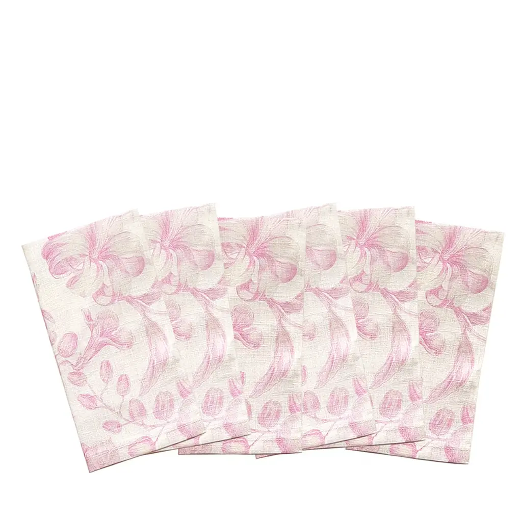 Marie Antoinette Set Of 6 Pink & White Napkins
