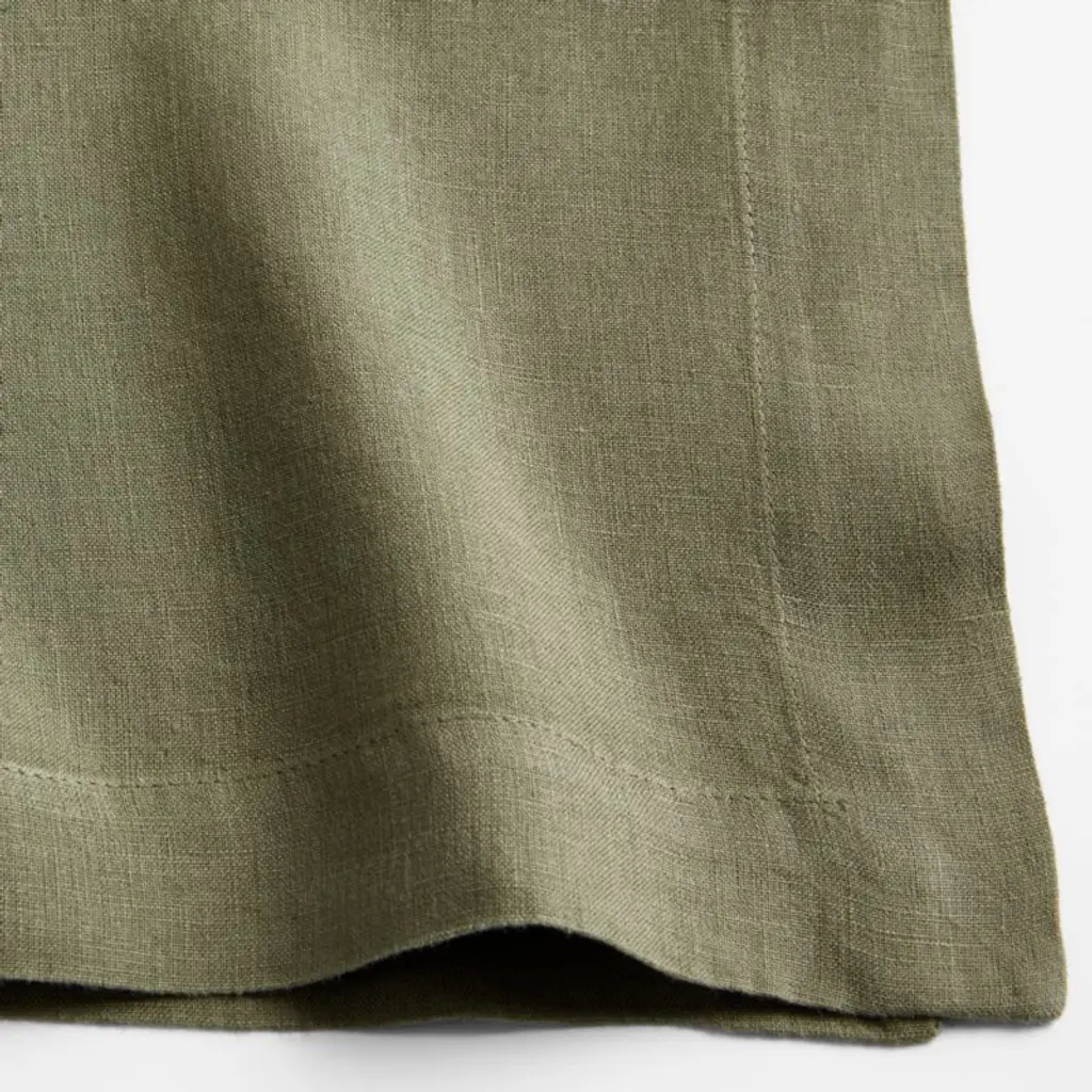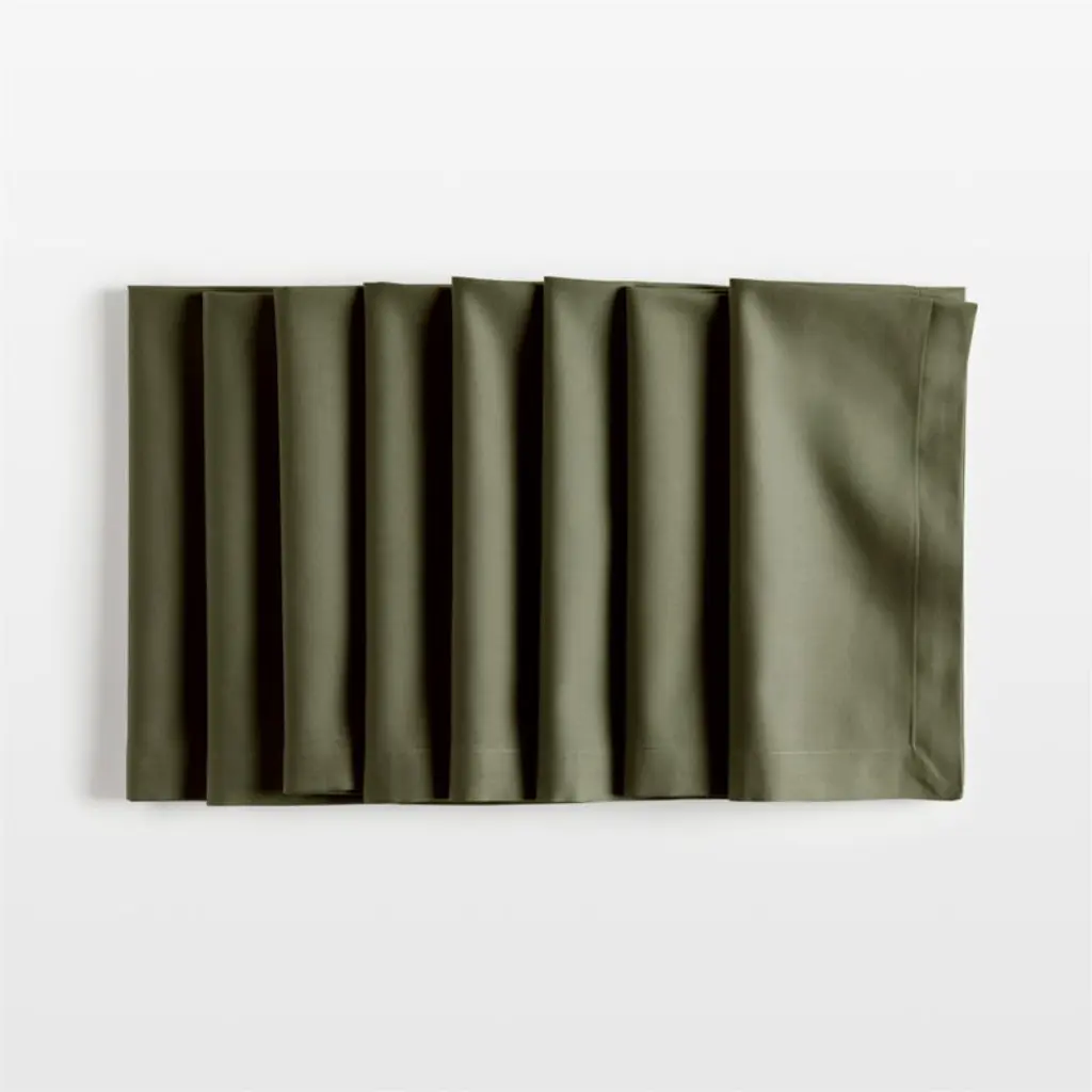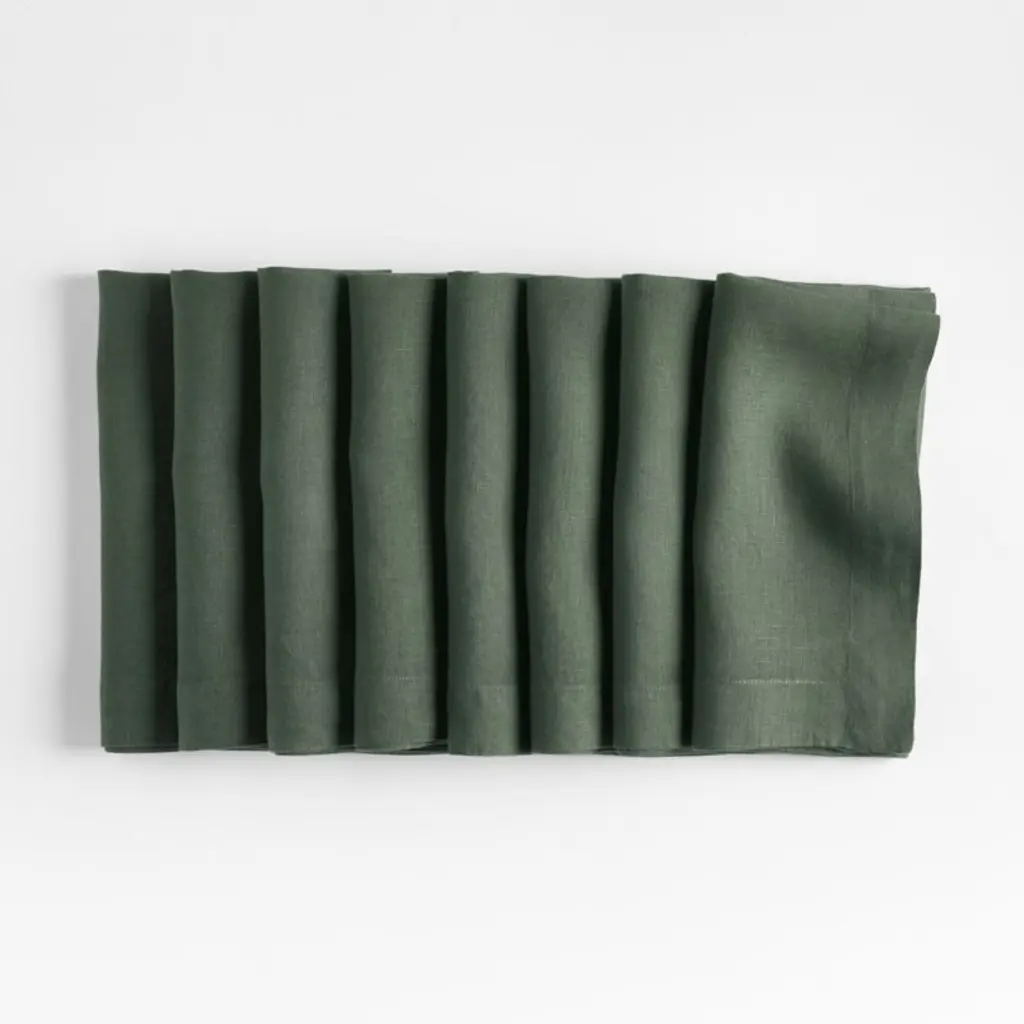 Our lightweight, pure linen cloth napkins unfold to generous 22-inch squares in desert green. Pre-washed for extra softness, our set of eight earthy green-brown napkins pairs with our dark or neutral dinnerware for a modern organic look. Tailor-finished with a 1.5-inch hem and mitered corners, the machine-washable linen napkin is a Crate & Barrel exclusive.