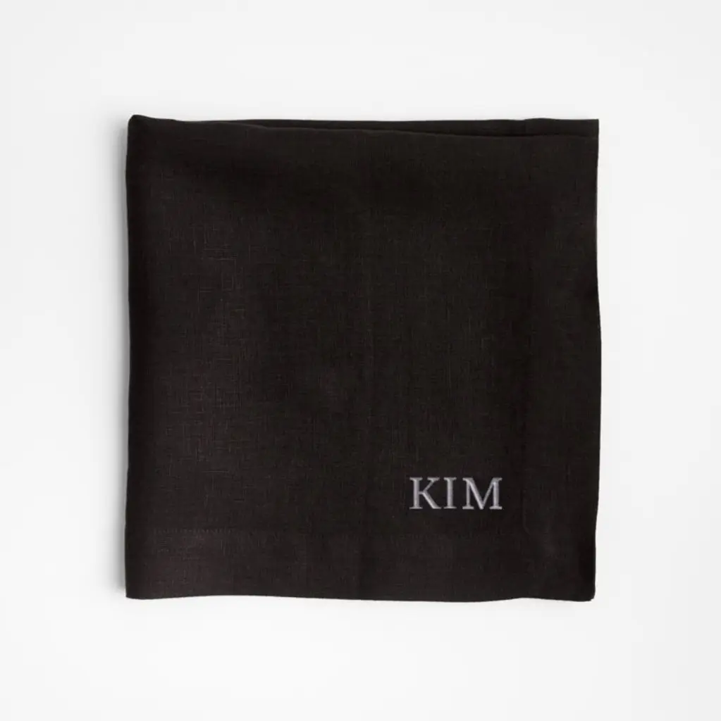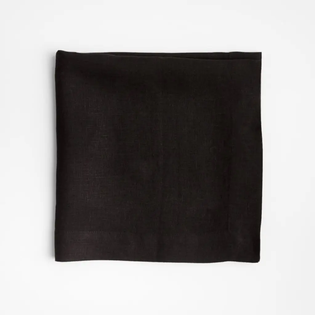 Part of our Marin table collection, this inky black dinner napkin is made of quality European linen that's exceptionally soft and supple. Each black napkin unfolds to a generous 22-inch square, pre-washed for extra softness. Tailored with miter corners, the linen napkin pairs beautifully with our modern dinnerware and cleans up easily in the washing machine and dryer.