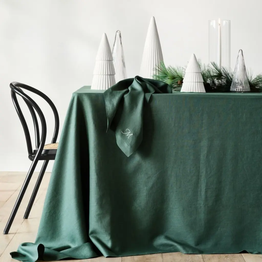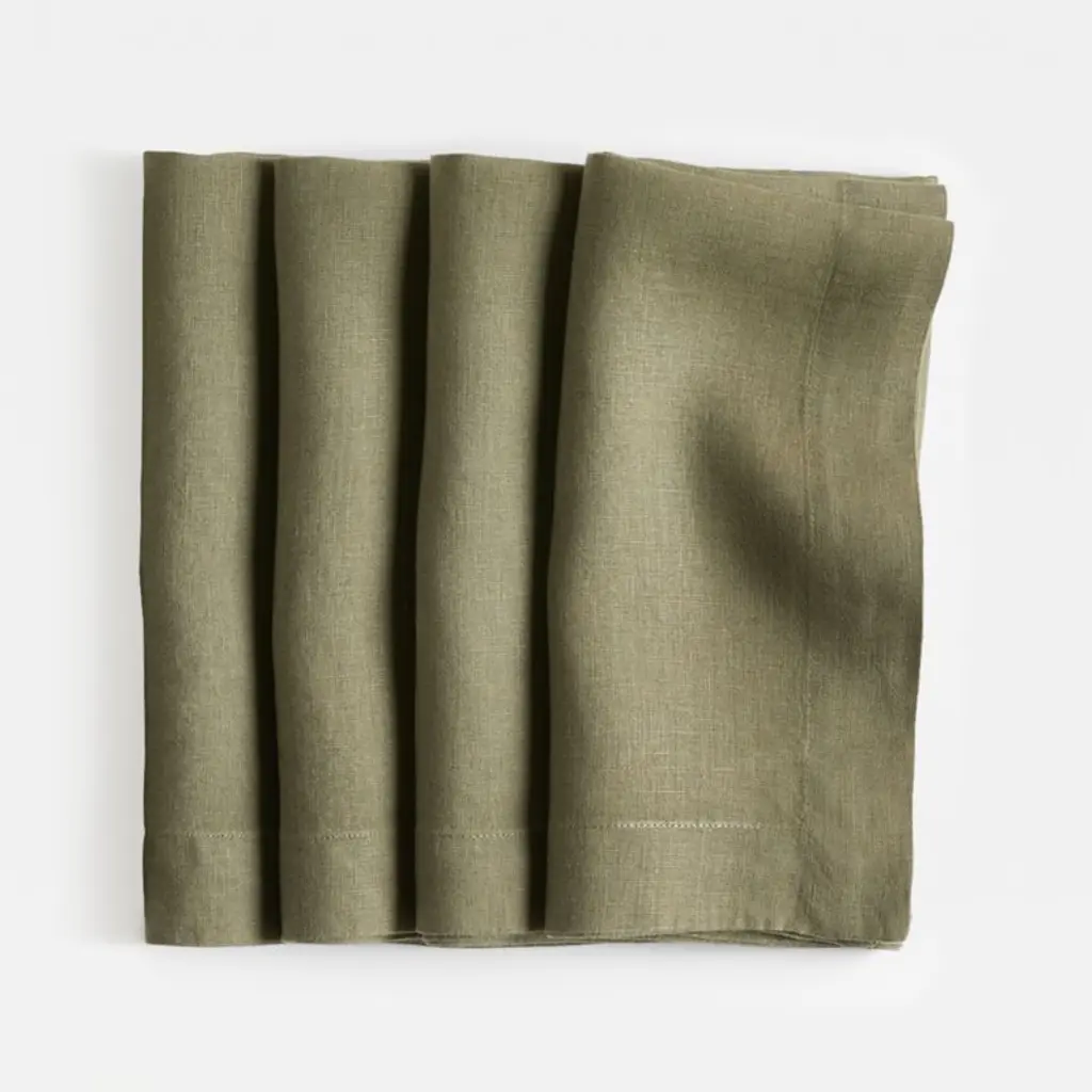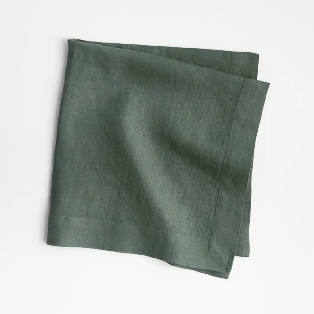 Our lightweight, pure linen cloth napkin unfolds to a generous 22-inch square in pine green. Pre-washed for extra softness, the cool evergreen napkin pairs with our white, black or neutral dinnerware to set a fresh table. Tailor-finished with a generous hem and mitered cornersdiagonal seaming that creates crisp cornersthe machine-washable linen napkin is a Crate & Barrel exclusive.