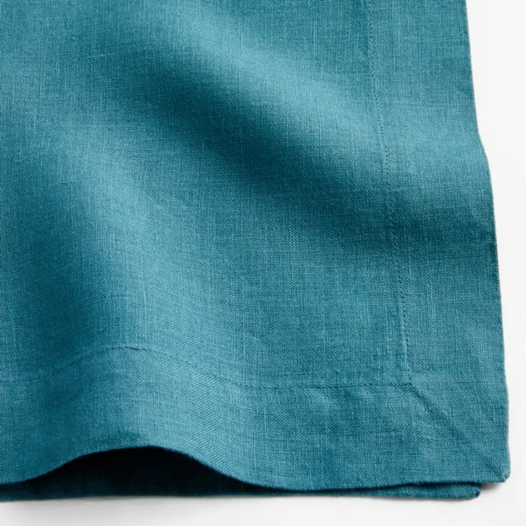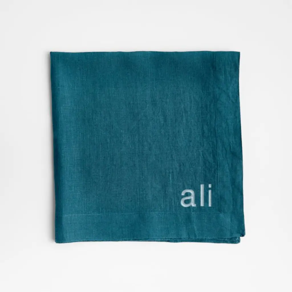Our pure linen cloth napkin unfolds to a generous 22-inch square in lush blue-green. Pre-washed for softness, the sea blue napkin pairs with our dinnerware for a vibrant look. Tailor-finished with a 1.5-inch hem and mitered corners, the machine-washable linen napkin is a Crate & Barrel exclusive.