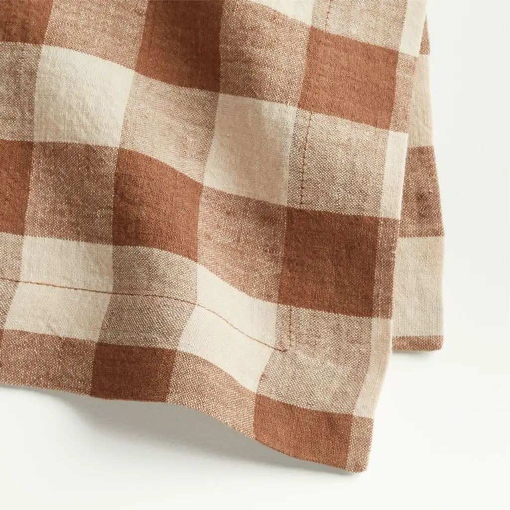 Walnut brown and creamy natural lines intersect in a modern buffalo check napkin with homespun charm. Our sustainable linen napkin unfolds to a lavish 22-inch square with generous hems. Prewashed for extra softness, the machine-washable cloth is finished with mitered tailoringdiagonal seaming that creates crisp corners. We love the way this buffalo plaid napkin pairs with our natural-hued artisanal dinnerware to set a warmly welcoming table.