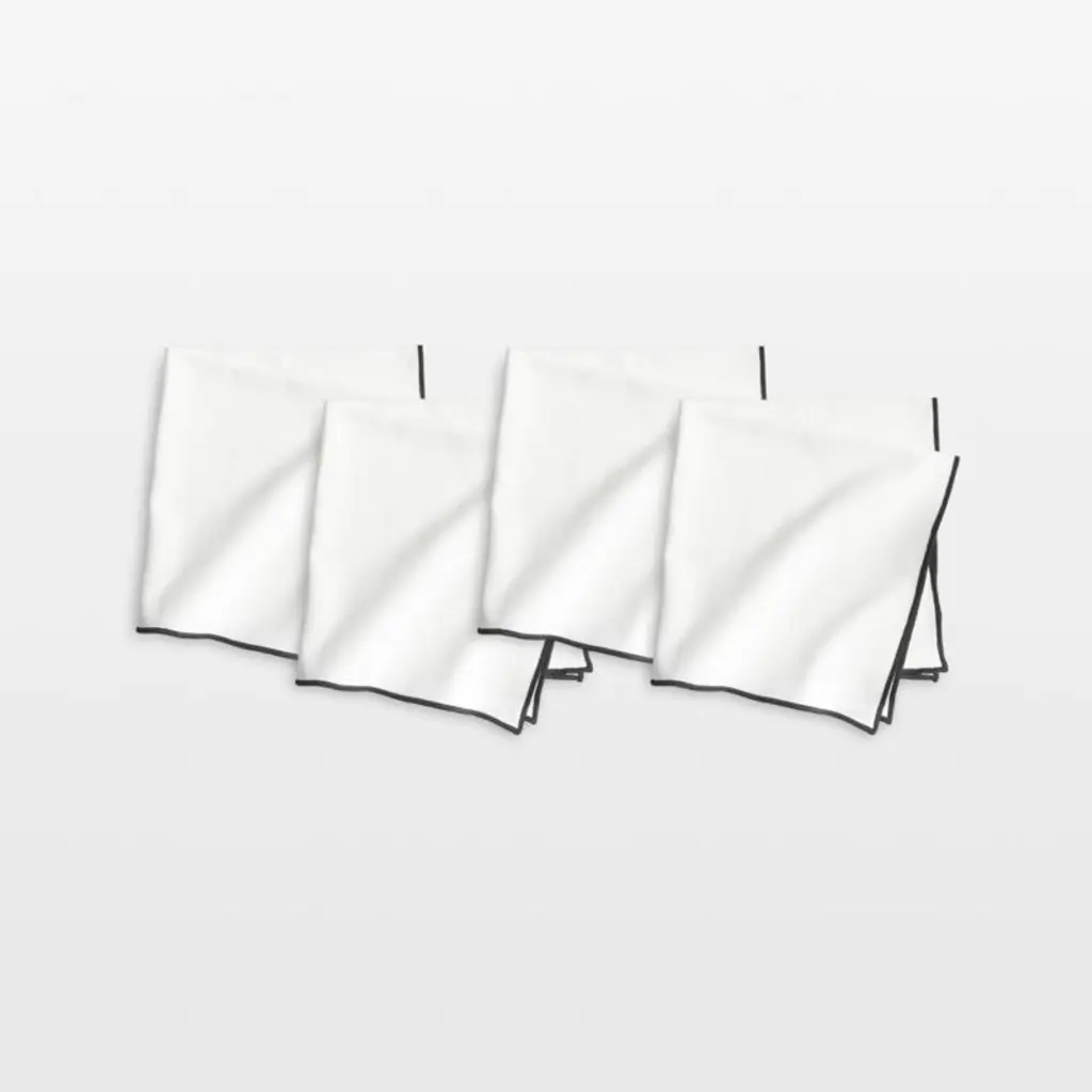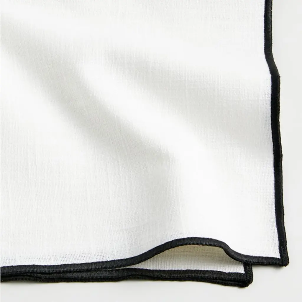 Black embroidery brings graphic impact to our white Mercer dinner napkins. Made of organic cotton, the four bright white napkins in the set feature merrow-stitched borders in contrasting black for a look that's clean-lined and classically modern.