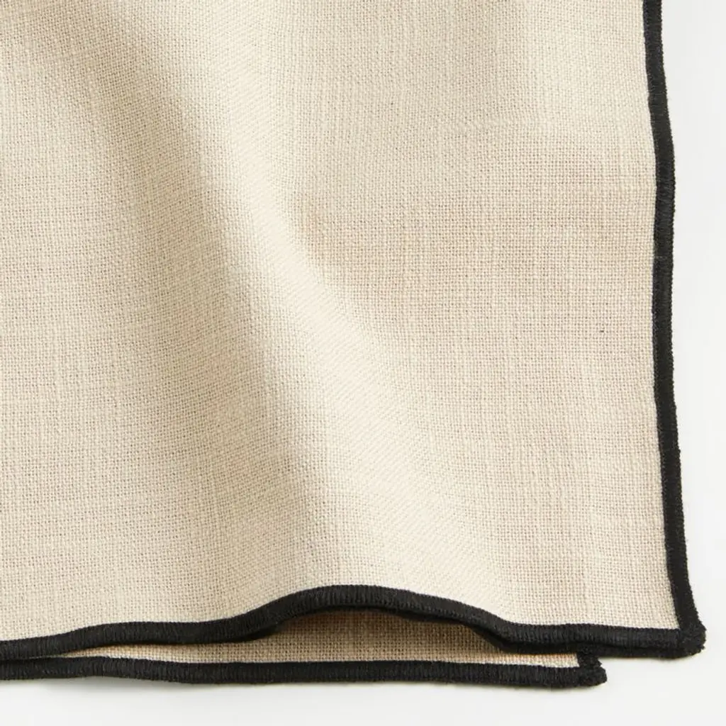Black embroidery brings graphic impact to our natural Mercer dinner napkins. Made of organic cotton, the eight neutral-hued napkins in the set feature merrow-stitched borders in contrasting black for a look that's clean-lined and classically modern.