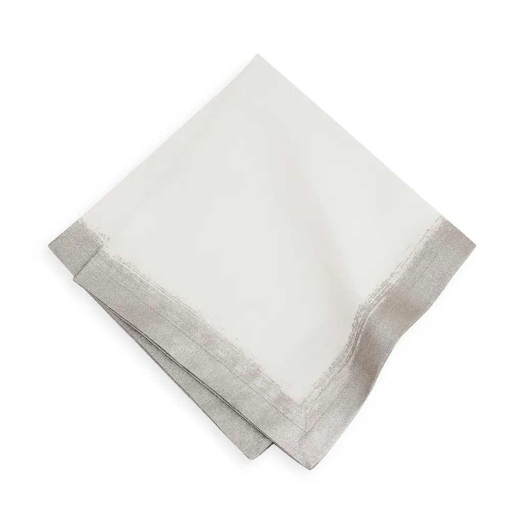 Made of linen and adorned with a printed metallic brushstroke border, these placemats and napkins by Villeroy & Boch set a sophisticated foundation for your favorite dinnerware.