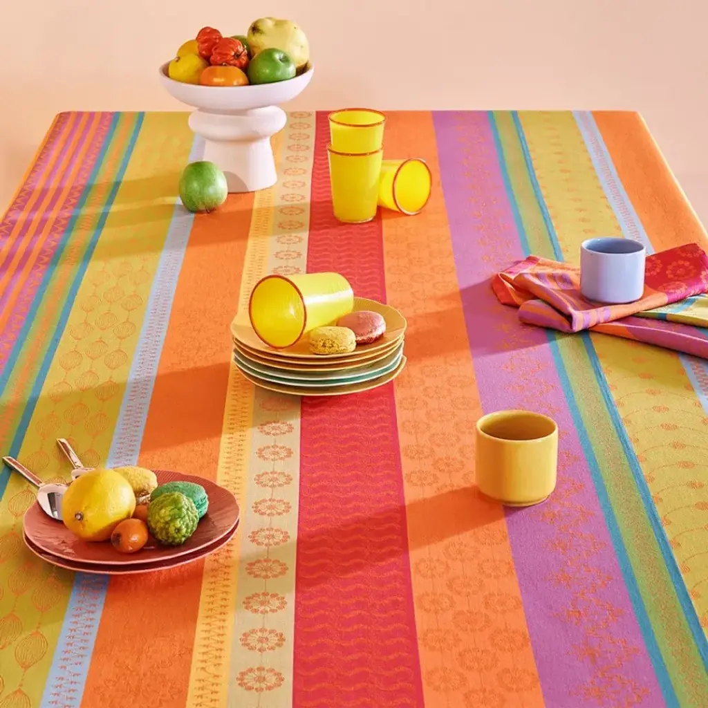Bold, bright colors come alive in orange stripes that is sure to make a splash. Since 1870, Garnier-Thiebaut has created classic and jacquard linens in the quintessential French style. Their linens have been used by the Four Seasons George V in Paris, the Mandarin Oriental Hotel in Geneva, The Ritz Carlton, Manama (Bahrain), Le Meridien Bora Bora, the Four Seasons Hotel, New York, and The French Laundry in Yountville.