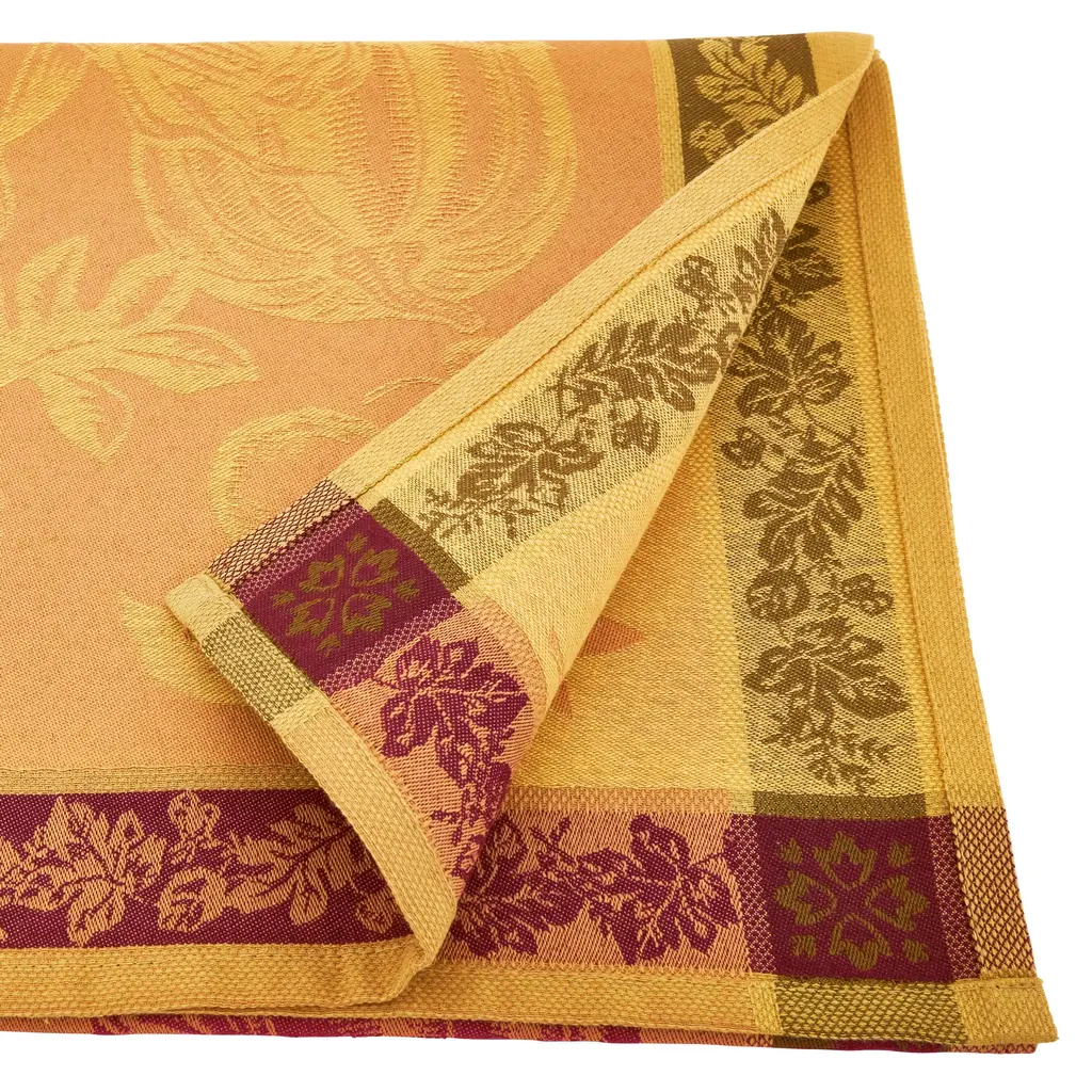 Immerse your table decoration in exotic elegance with the Mumbai table linens, on which rich and captivating patterns celebrate Indian traditions. Make every meal a sensory journey to the heart of reinvented India. Since 1888, Le Jacquard Francais has created a collection of table linens without equal. Weavers, warp beamers, knotters and other specialists work in harmony to perfect the weaves and colors of all of their linens. Classic Le Jacquard Francais linens are characterized by using framed woven patterns to create timeless tablecloths, napkins, placemats and table runners that will beautify your tables for many years. Le Jacquard Francais coated tablecloths are made of 100% cotton weave with long fibers. They are waterproof and stain-resistant thanks to a patented and exclusive acrylic coating that withstands washing. Newly introduced, LJF by Le Jacquard Francais is a more casual line of contemporary looks that mixes colors and patterns and plays with graphics. Practical and easy to use, these tablecloths will stand up to frequent use in the kitchen or patio.