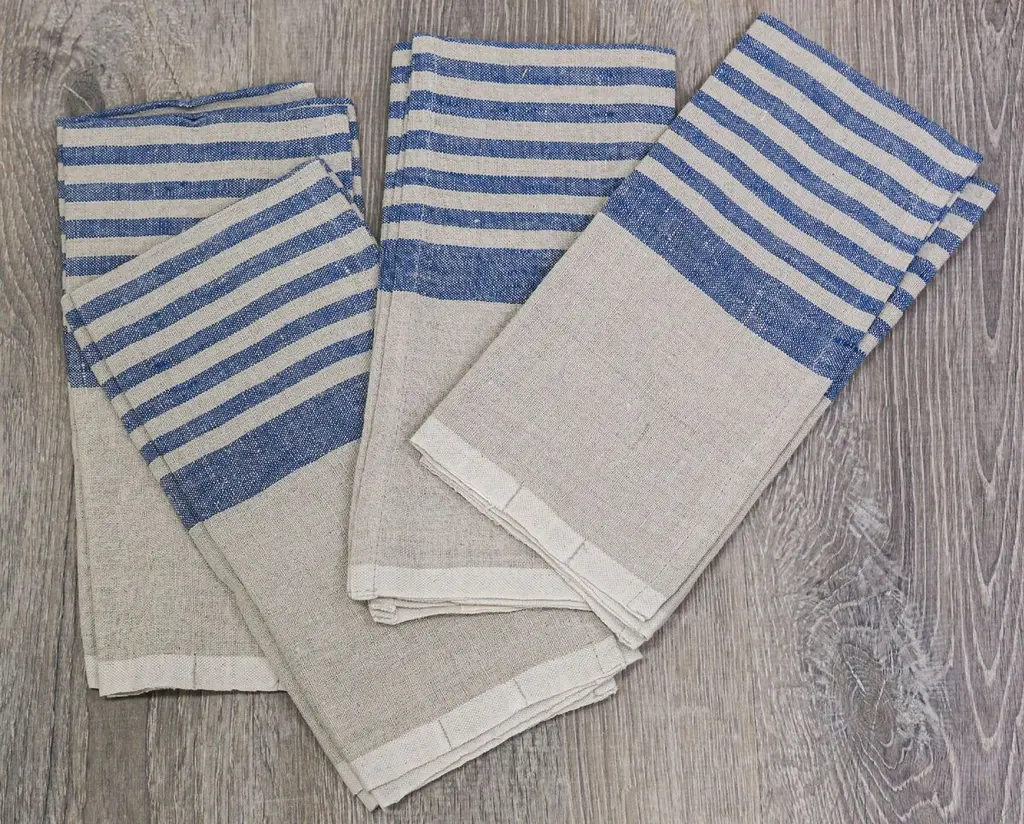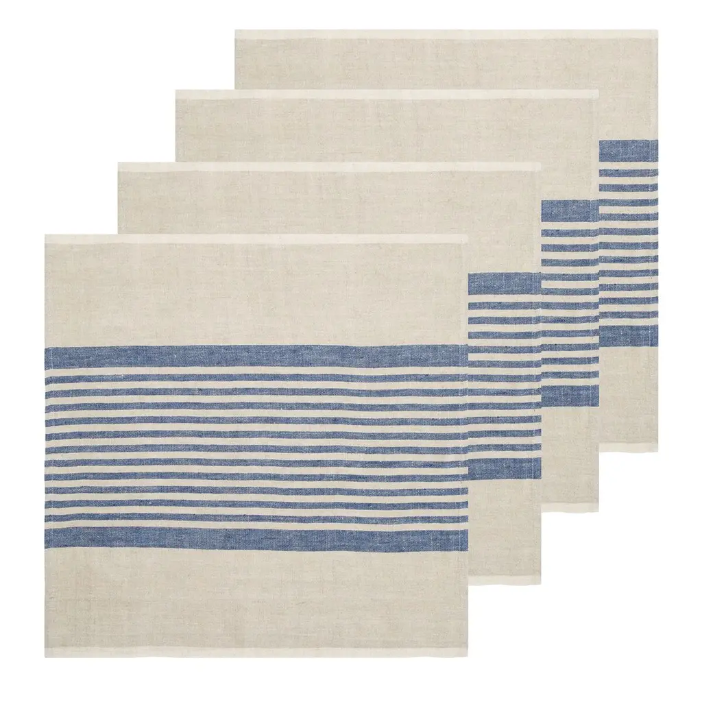 Enhance your table setting with the timeless charm of our Brittany Linen Napkins. Crafted to bring classic French country elegance to your dining experience, this set of four napkins features centered, varied stripes against a natural linen palette for an effortless tablescape. Mix and match these stripes to create your perfect place setting. Bon Appétit!