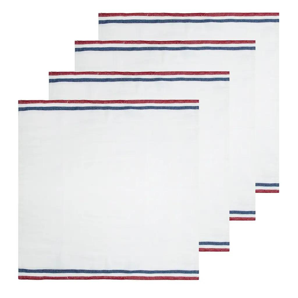 Our Classic “Normandy” tricolor napkin will have your guests dreaming of French culinary delights. They're fashioned from linen, which is entirely handmade from the spinning to weaving stage for a natural oh so feel good hand.