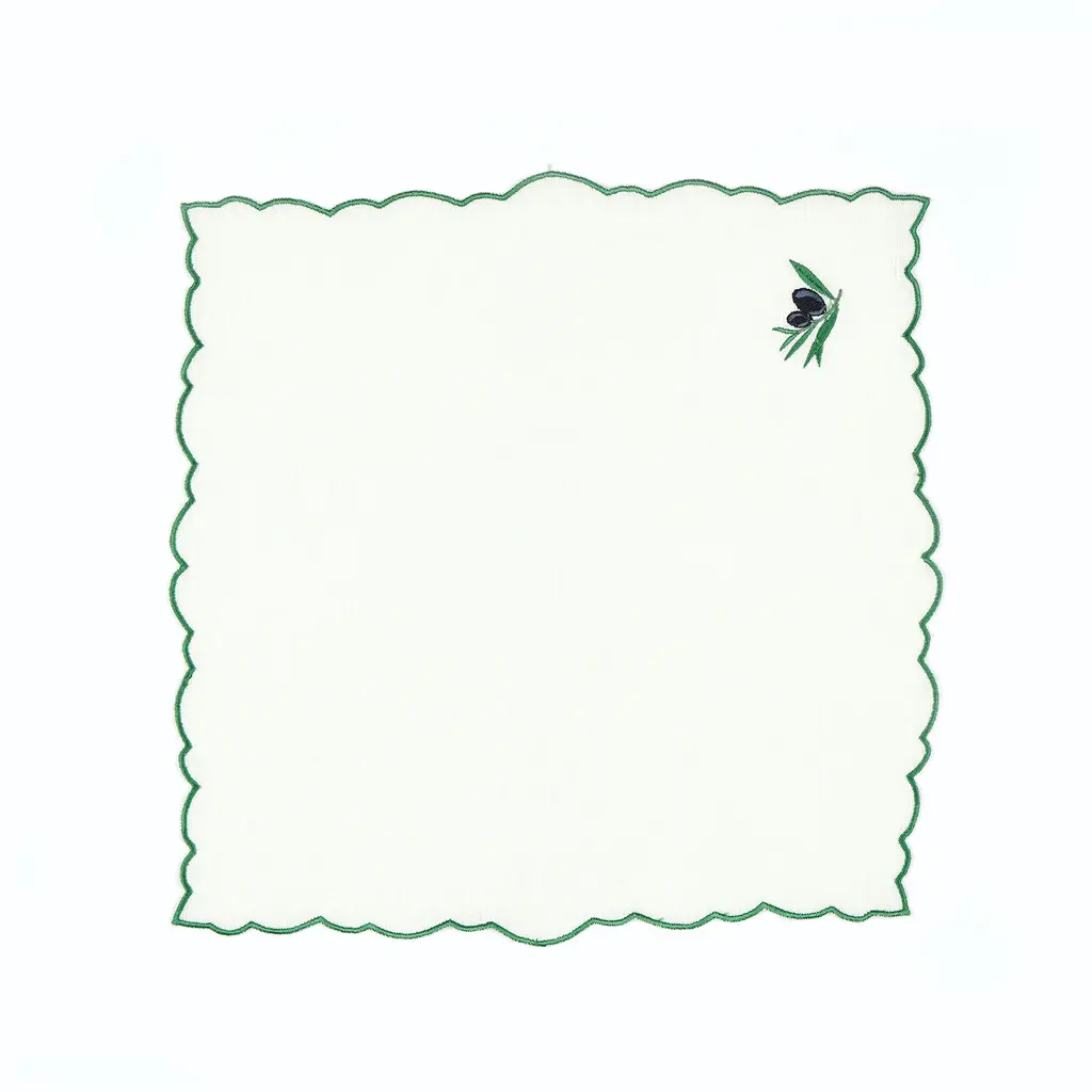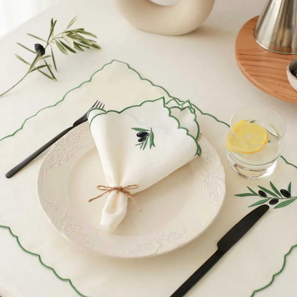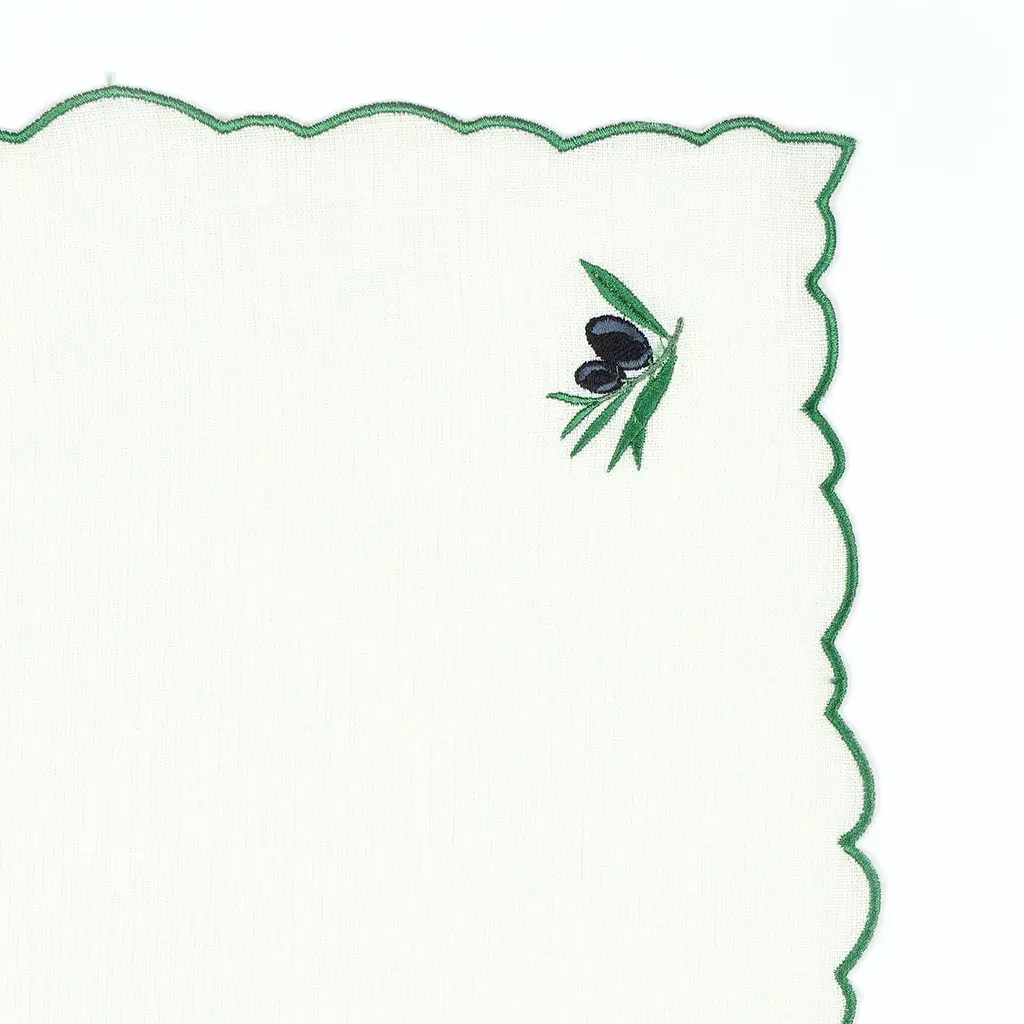 Olive Embroidery Linen Napkins Set Of 2