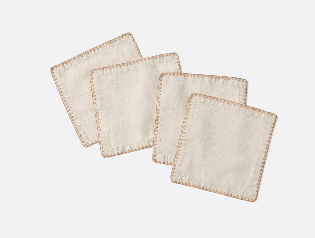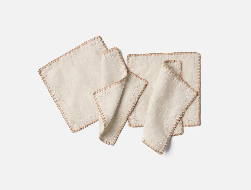 Add a touch of vintage charm to your table with the Olivos Embroidered Organic Linen Napkins. Crafted from the same luxurious French linen as our award-winning sheets, they feature an exquisitely relaxed handfeel. The intricate shell stitch embroidery is inspired by novelty designs, and adds a refined finish.