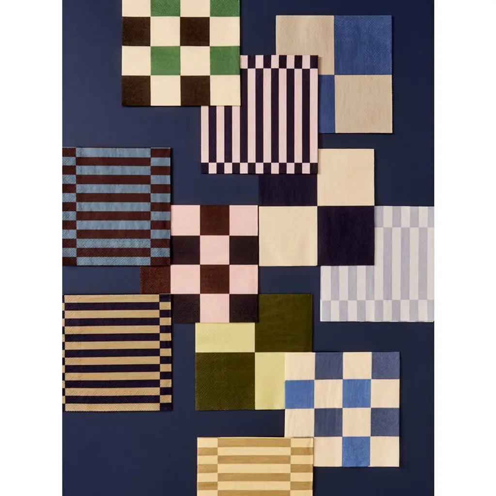 HAY's Pattern napkins are so charming, you almost can't bear to use them! Adorned with fun, geometric patterns, the napkins are a refreshing decorative element, especially at the dinner table, but also perfect for wiping your mouth at breakfast or just about anywhere else. Made from eco-certified tissue paper, the napkins are available in many appealing colors – try combining your favorite set of different shades and patterns! The package includes 20 paper napkins.