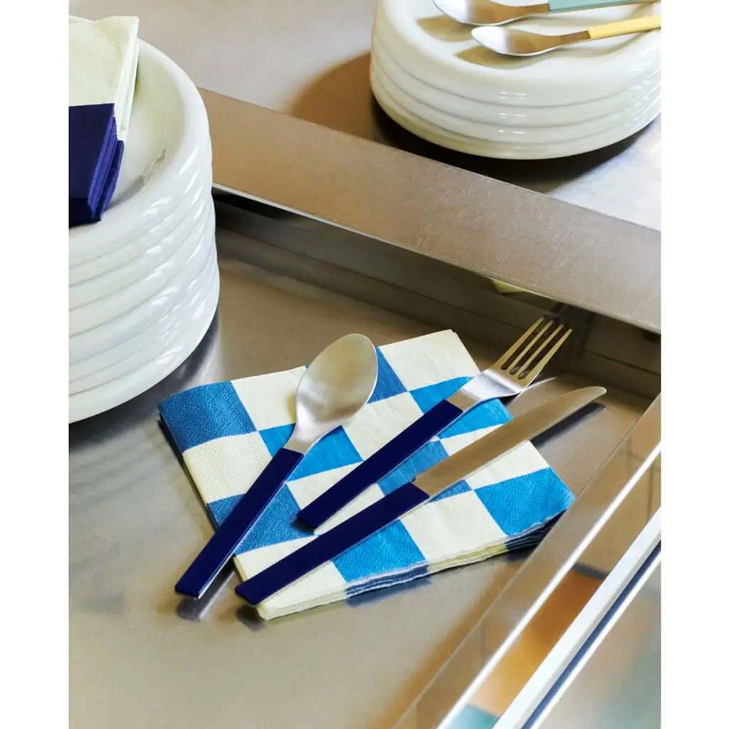 Pattern Paper Napkin, Dinner, Set Of 20, Off-White - Blues M Check