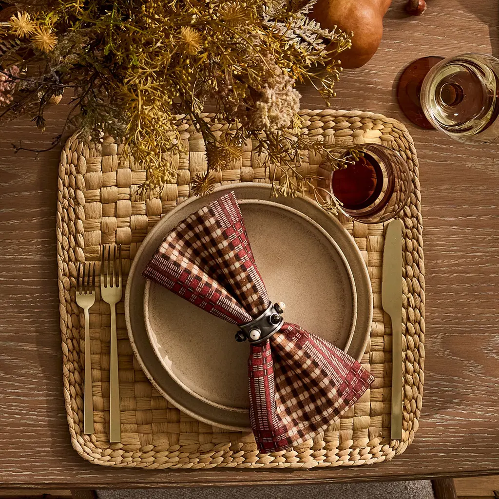 Classic plaid adds minimalist appeal to your table. Chic alternative to paper napkins. Soft cotton is light yet durable for daily use. Machine washable for easy care. Crafted in a Fair Trade Certified™ facility.