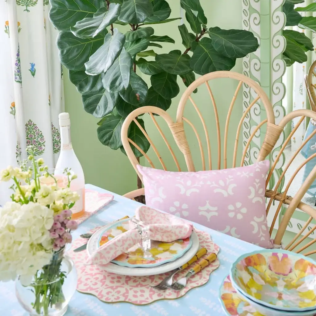 Porto Tiles Blush Scalloped Dinner Napkin Set (Set Of 4)