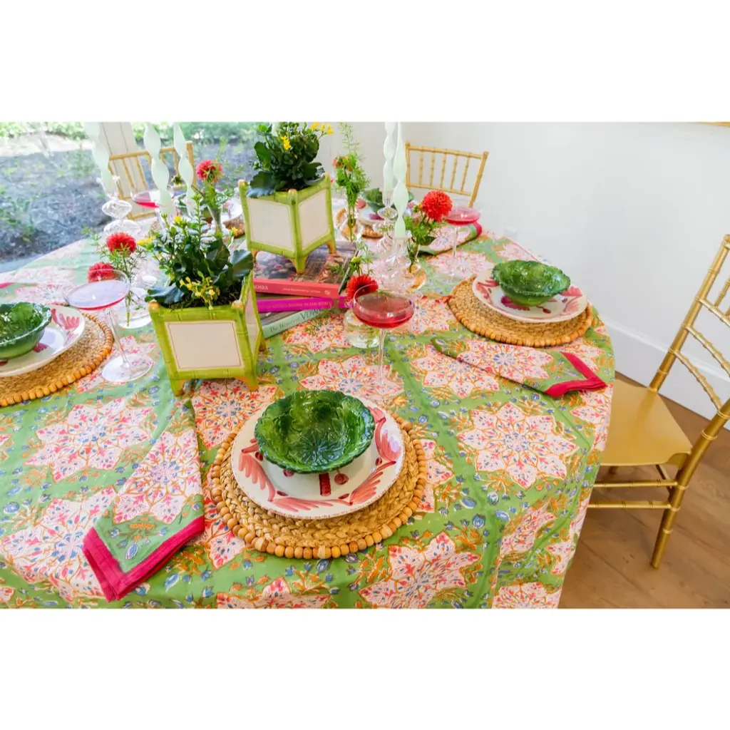 Jubilant hand-block prints add color and chicness to any occasion, whether indoors or al fresco dining. Be sure to look at the complimenting napkins (#523028) to complete your setting!