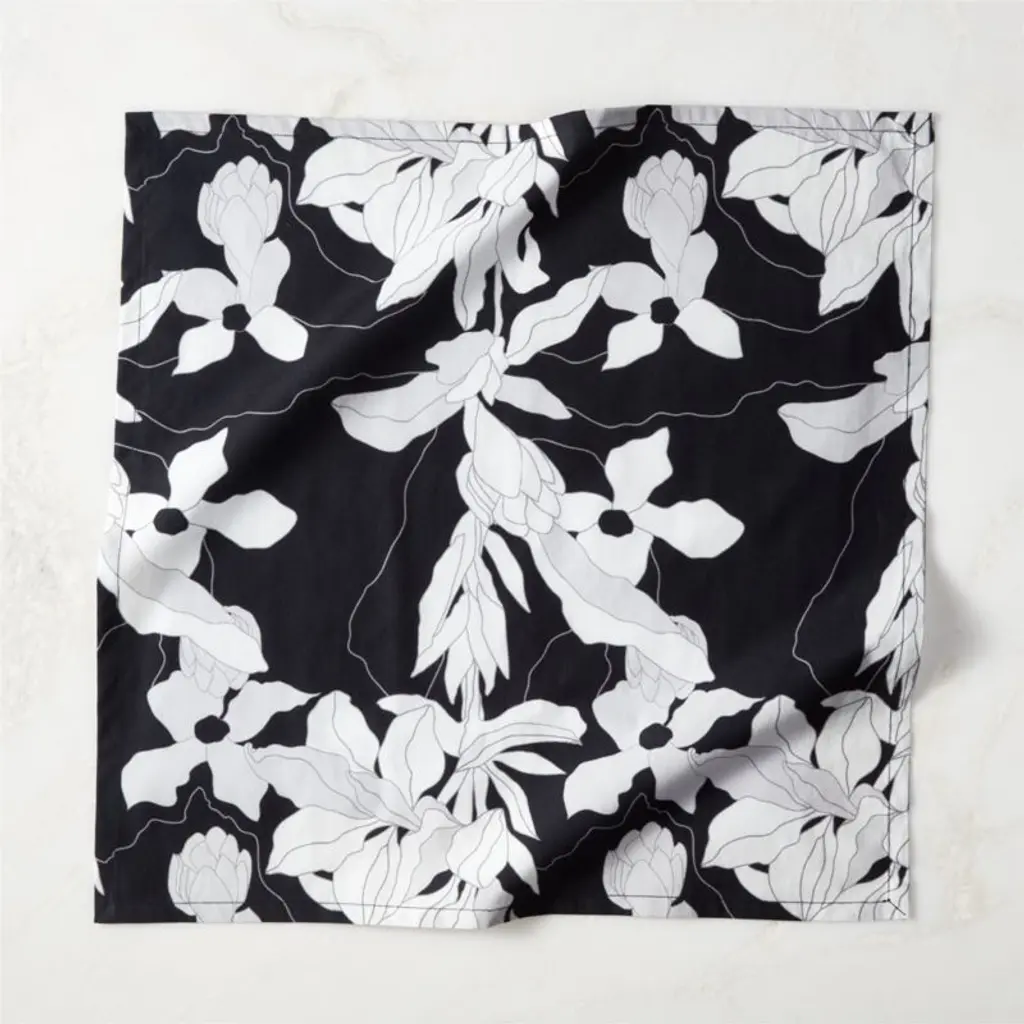 Poplin cotton napkin features an elegant floral pattern designed by Portland-based Laundry Studio. Printed on certified organic cotton, bold black-and-white blossoms set a lively table. CB2 exclusive.