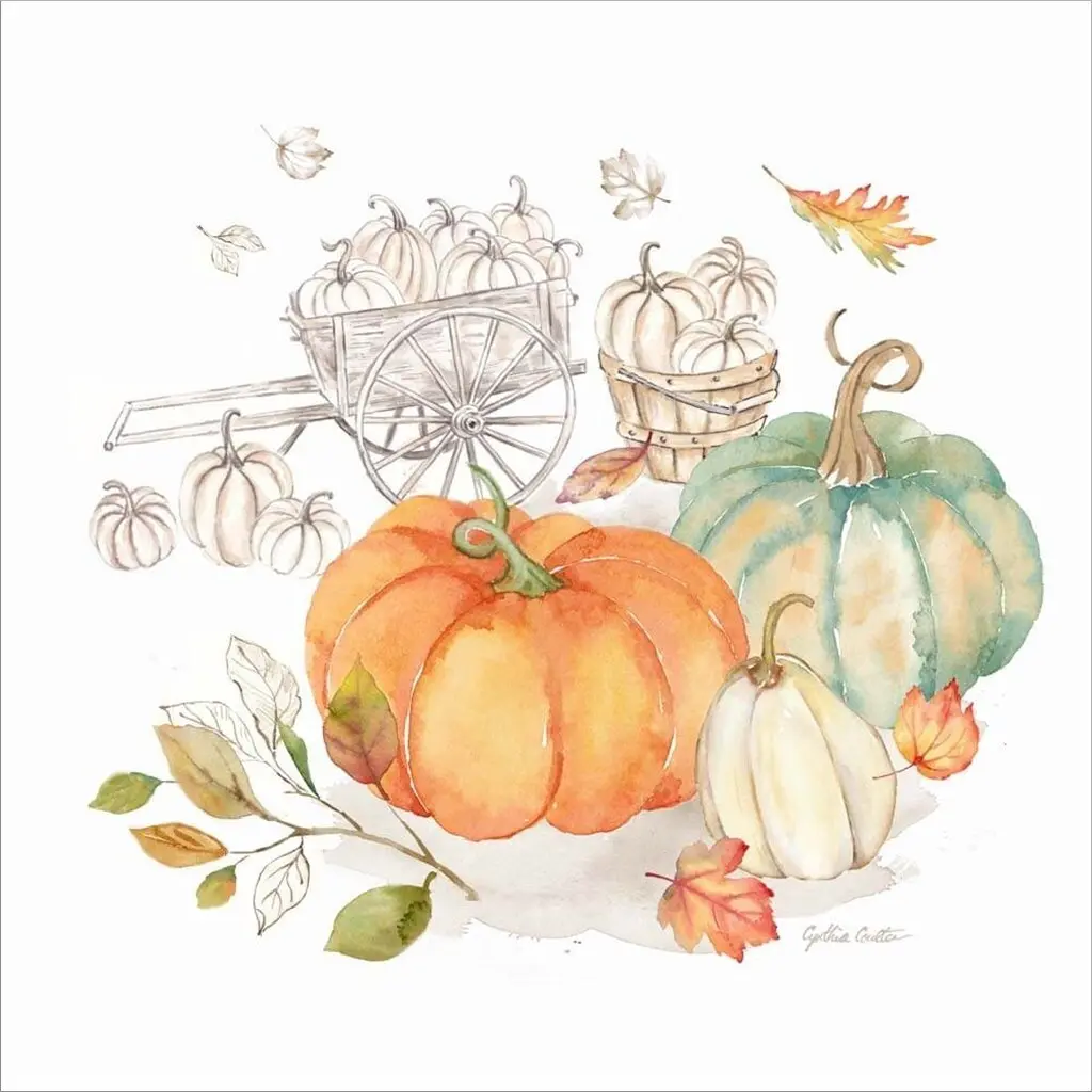 Pumpkin Field Paper Luncheon Napkins In White, 20 Per Pack