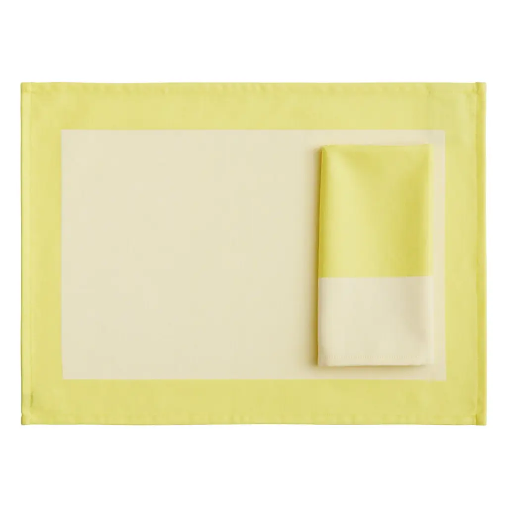 HAY's Ram napkin is a cheerful serviette to make setting the table and dining an experiential affair. Adorned with cheerful shades of yellow, the napkin made of organic cotton serves as a fun and functional detail for both casual and festive settings. The fabric napkin belongs to the Ram collection, created by Serbian designer Ana Kras, which includes textiles that play with contrasting colors. The beautiful hues not only frame each other but also the room – it's no coincidence that the name of the collection, Ram, means "frame" in Serbian.