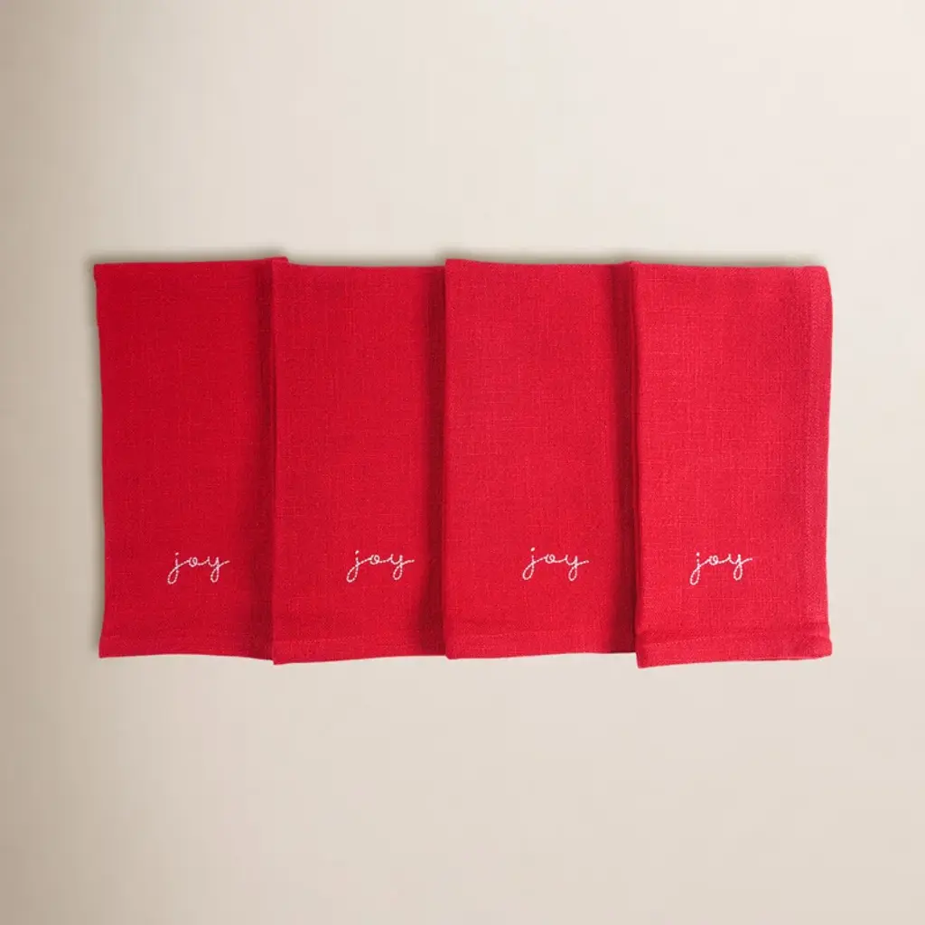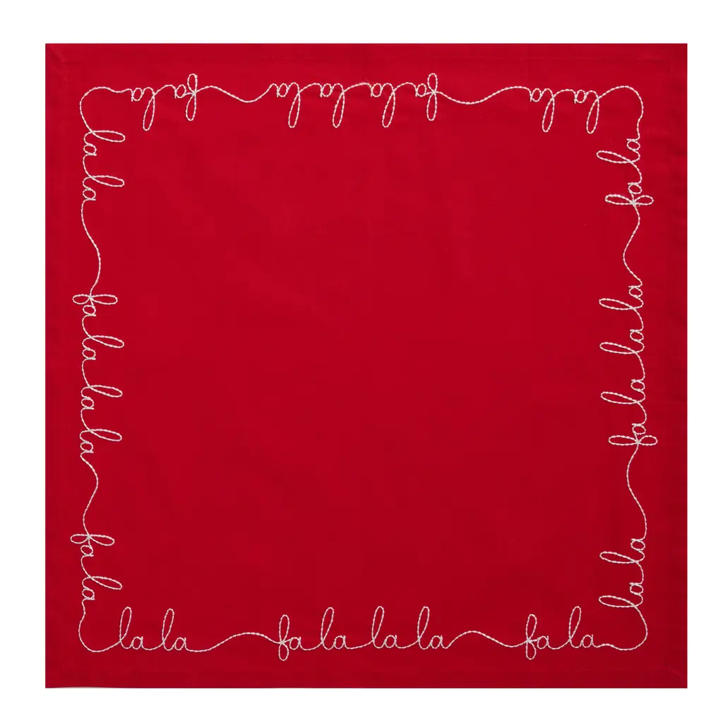 Whether you're hosting a Christmas Eve feast or setting the table for a casual secret Santa gift exchange, our exclusive napkin adds a modern, festive feel. It's made in India of 100% cotton in a cheery red hue with a scrolling white "Fa La La" typography border featuring a classically charming running stitch. From scented candles to detailed runners, World Market is your shop for holiday tablescape accents that make a memorable and merry impact!
