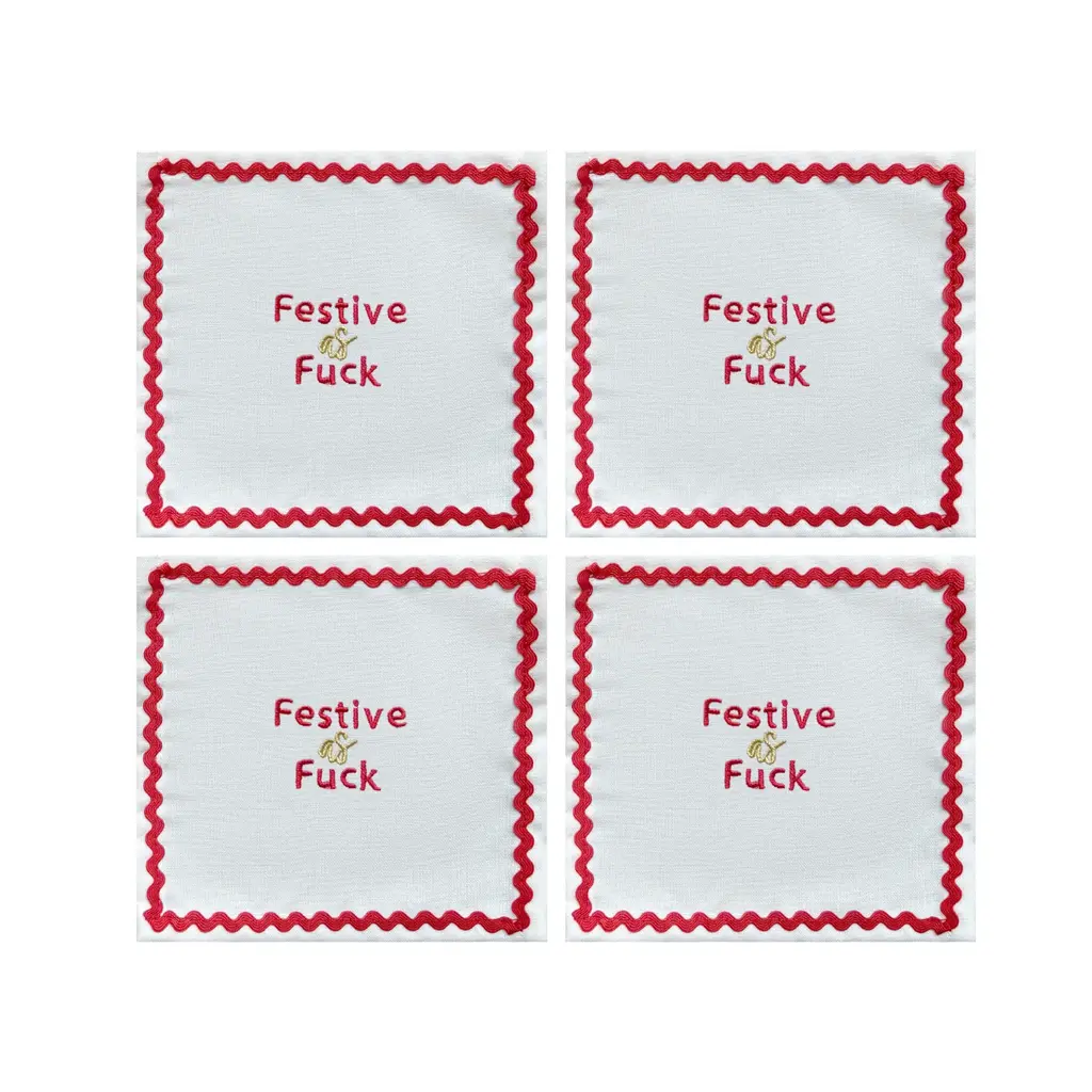 Set of 4Pop the champagne with these Embroidered cocktail Napkins to your soiree! They'll make the perfect accompaniment to whatever concoction you choose -- Please Leave By Nine
