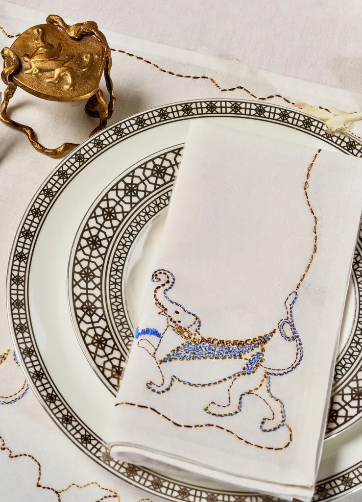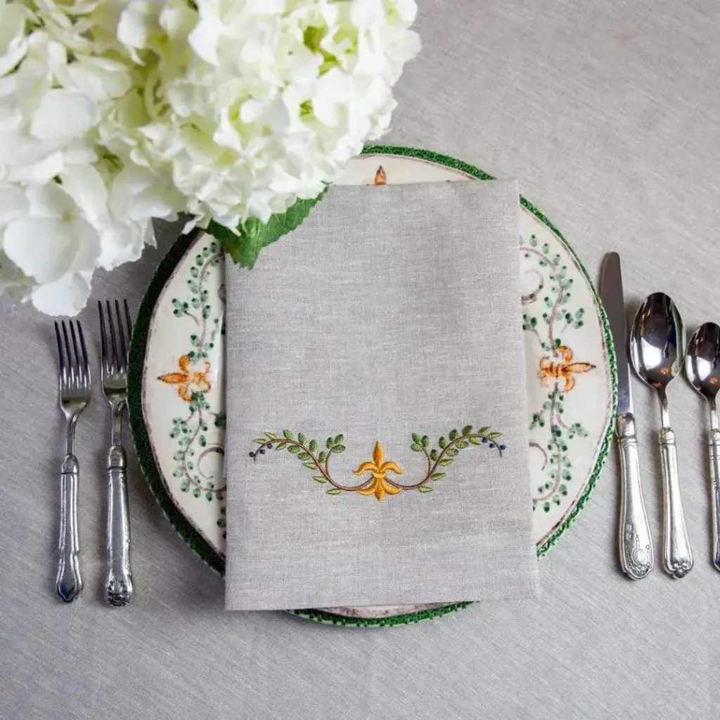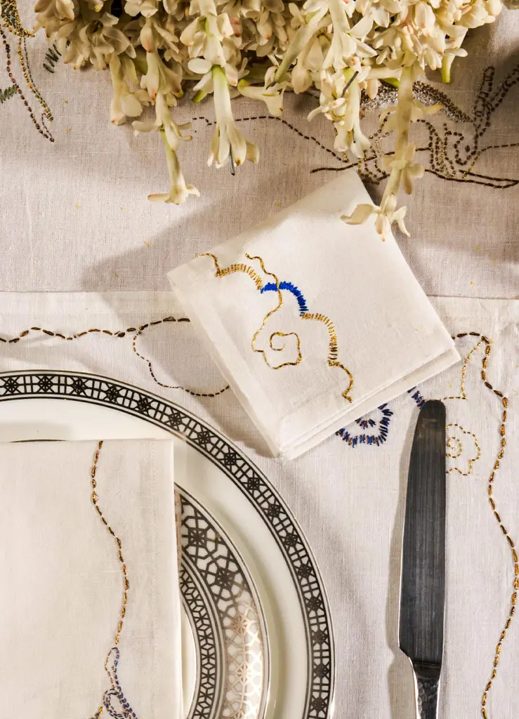 From our Relief Collection, our Relief Flute Napkin features traditional Anatolia wire-breaking, metallic embroidery over beige linen. Our artisans have crafted it with hand embroidery.You can create your own set by purchasing different quantities according to the needs of your table and combining them with other Maji Atelier products.