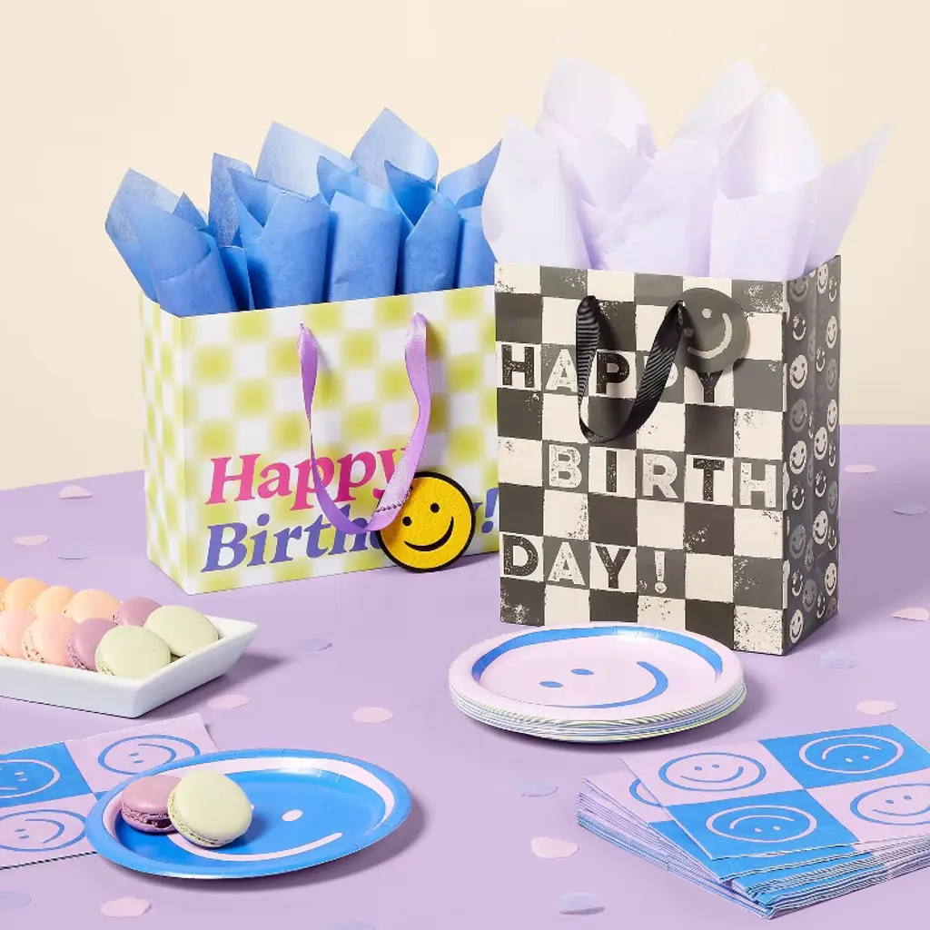 These simplistic Retro Smiley Face Lunch Napkin 30ct from Spritz™ go well with any party accessories. These paper lunch napkins are ideal for serving a wide range of snacks, as well as wiping away spills. Disposable in nature, these paper napkins complement a range of dining decor styles. Place these napkins from Spritz™ next to your tableware or in a napkin ring to add a touch of sweetness to your parties.Spritz™: Pops of joy that make the moment™.