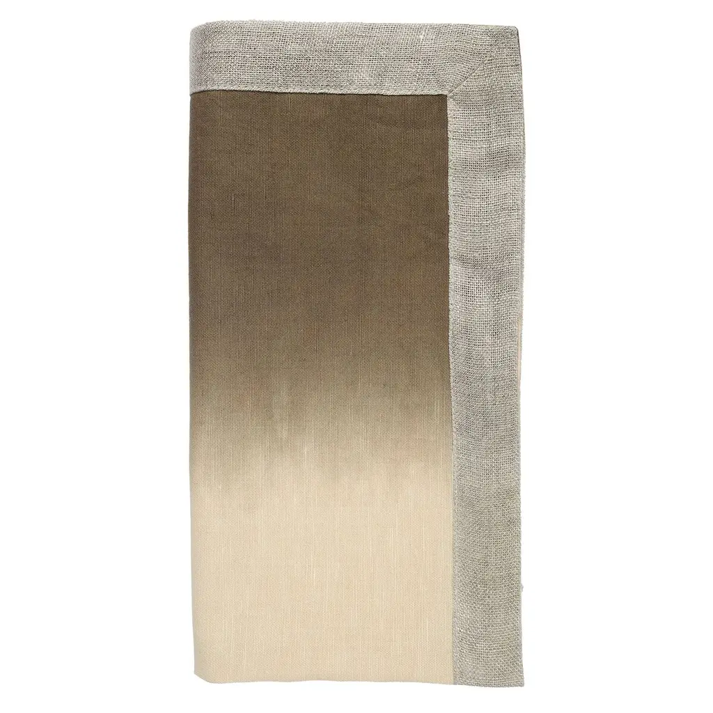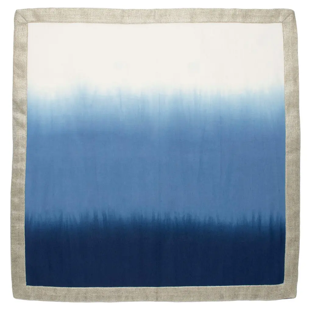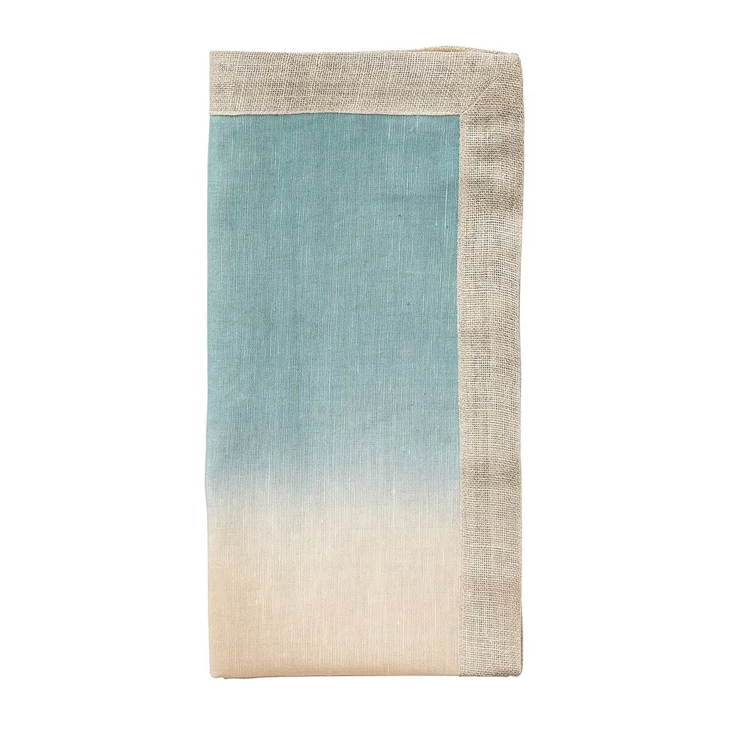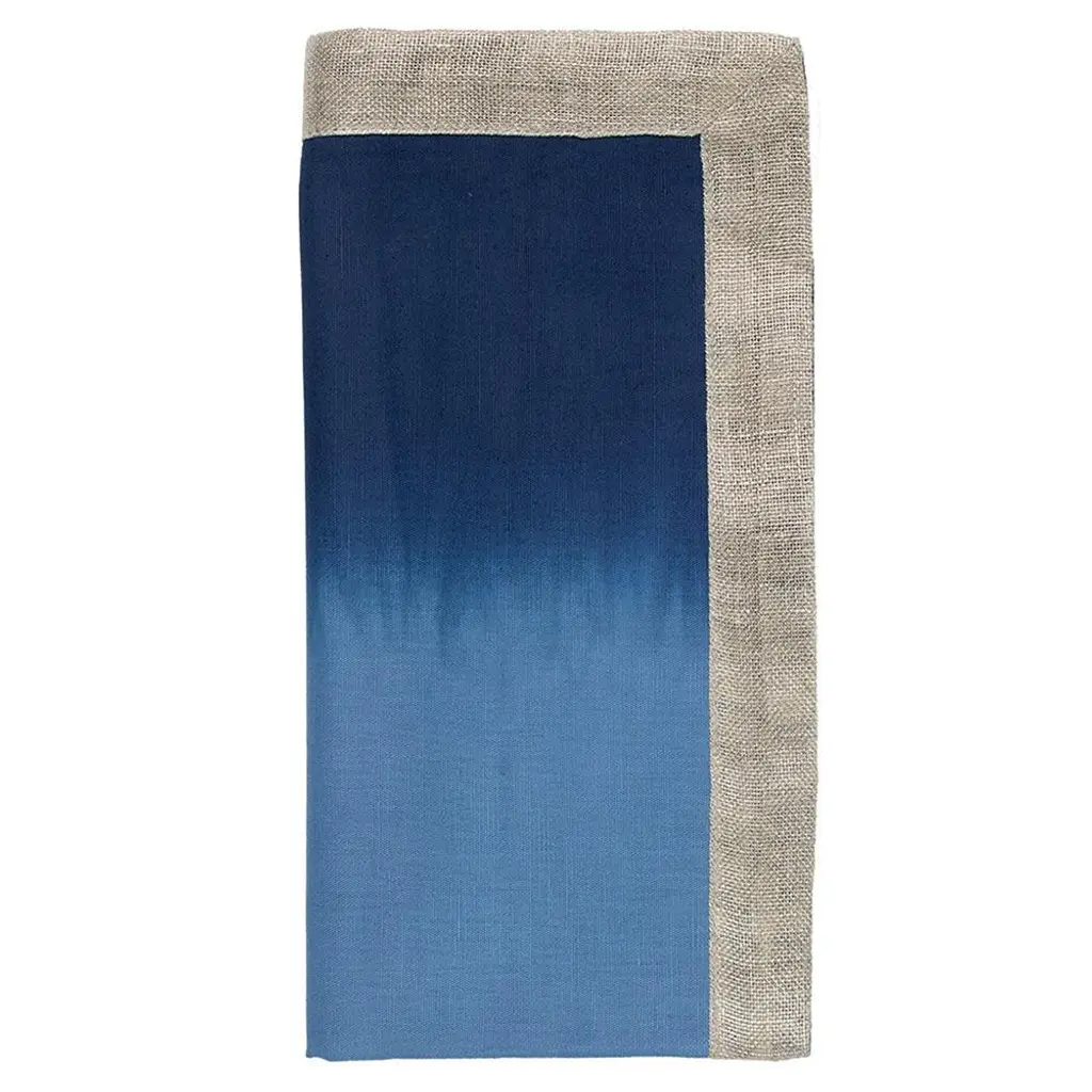 The Dip Dye Napkin features an ombre gradation, adding a subtle elegance to the refined napkin. This gorgeous color combination complements any table setting. These napkins are hand-dipped and dyed and accented with a luxurious metallic foil border. Each is hand-crafted by the finest artisans, with variations in density and depth of color to be expected.
