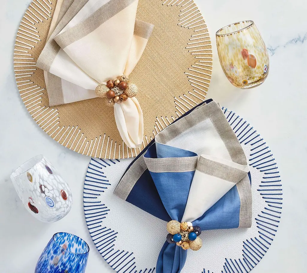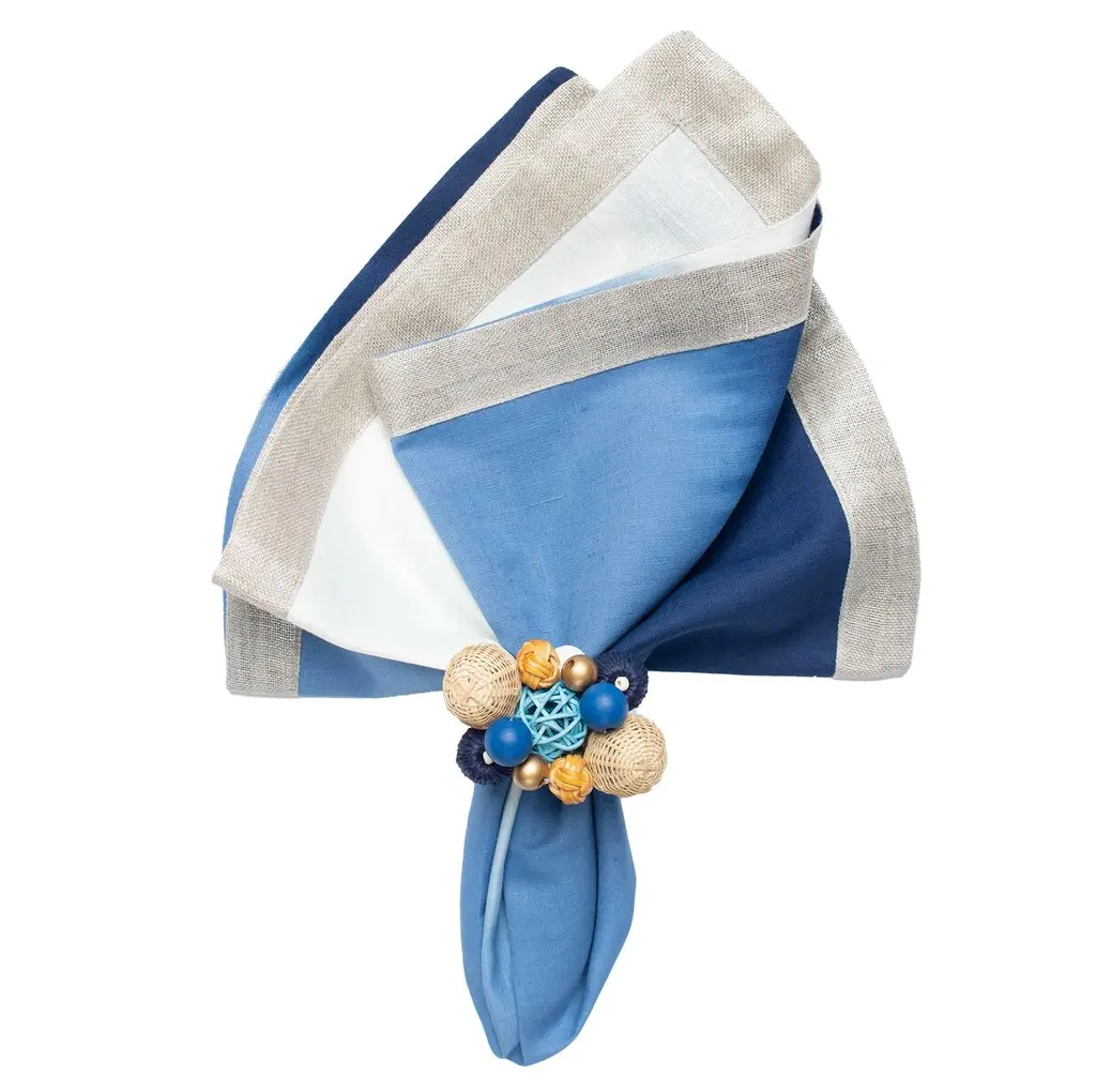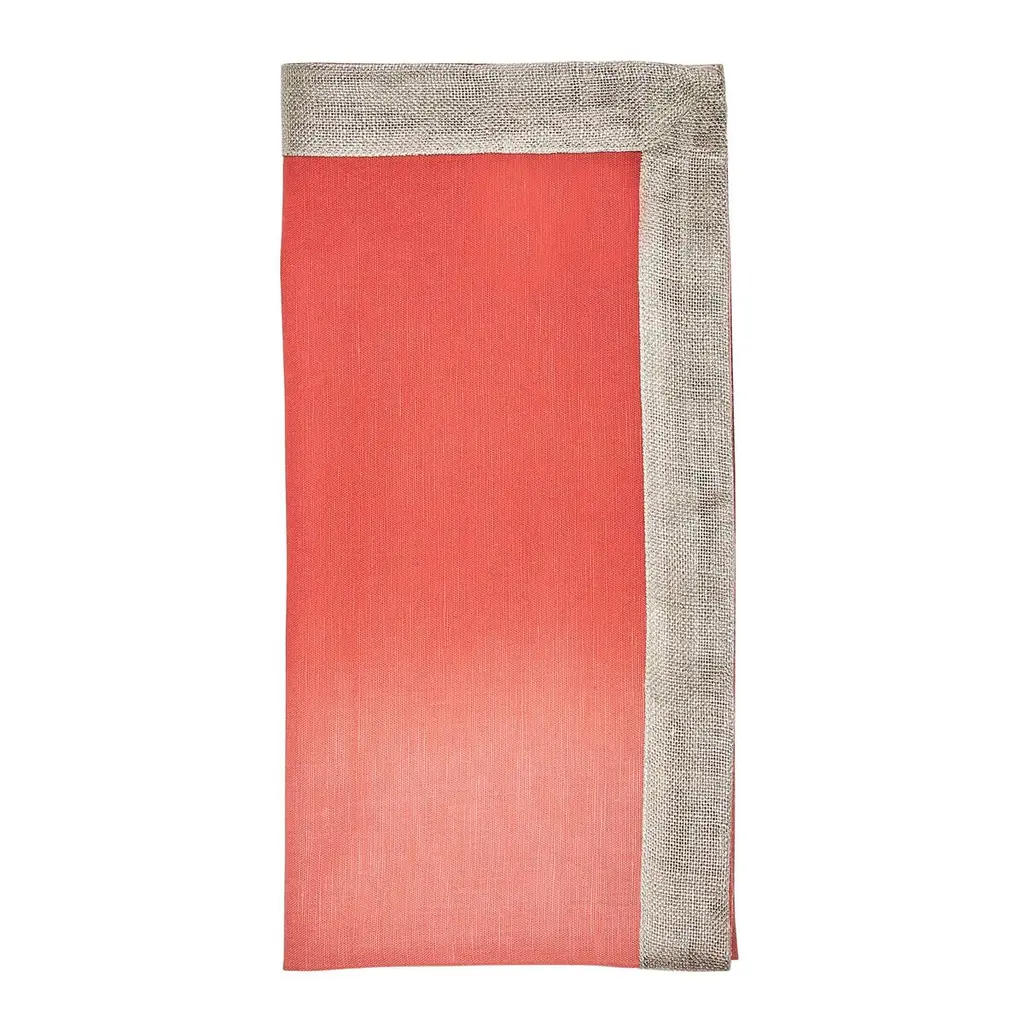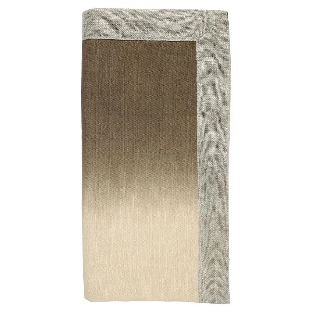 The Dip Dye Napkin features an ombre gradation, adding a subtle elegance to the refined napkin. This gorgeous color combination complements any table setting. These napkins are hand-dipped and dyed and accented with a luxurious metallic foil border. Each is hand-crafted by the finest artisans, with variations in density and depth of color to be expected.