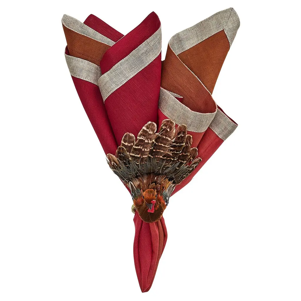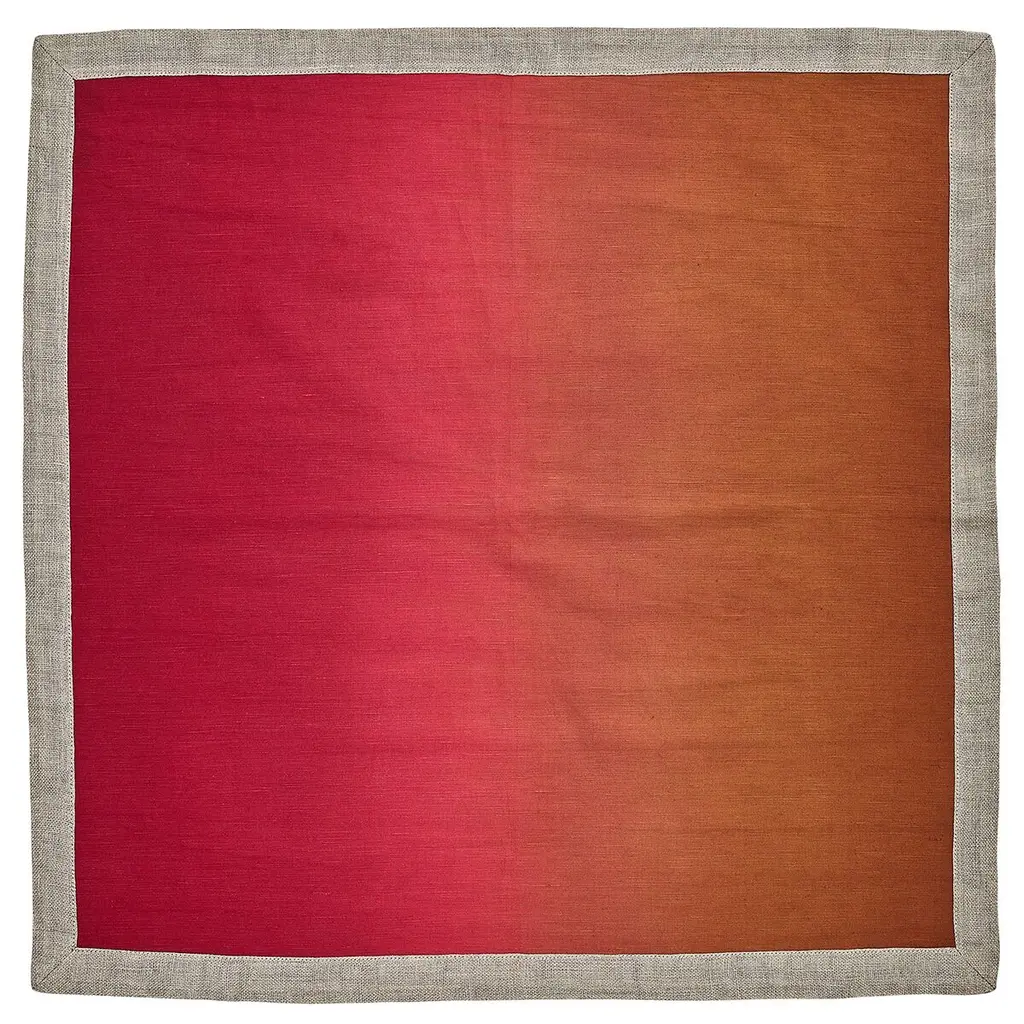 The Dip Dye Napkin features an ombre gradation, adding a subtle elegance to the refined napkin. This gorgeous color combination complements any table setting. These napkins are hand-dipped and dyed and accented with a luxurious metallic foil border. Each is hand-crafted by the finest artisans, with variations in density and depth of color to be expected.