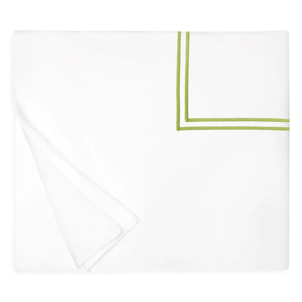 Scalloped silver trim adds just a touch of sparkle to this otherwise crisp-and-clean linen dinner napkin.