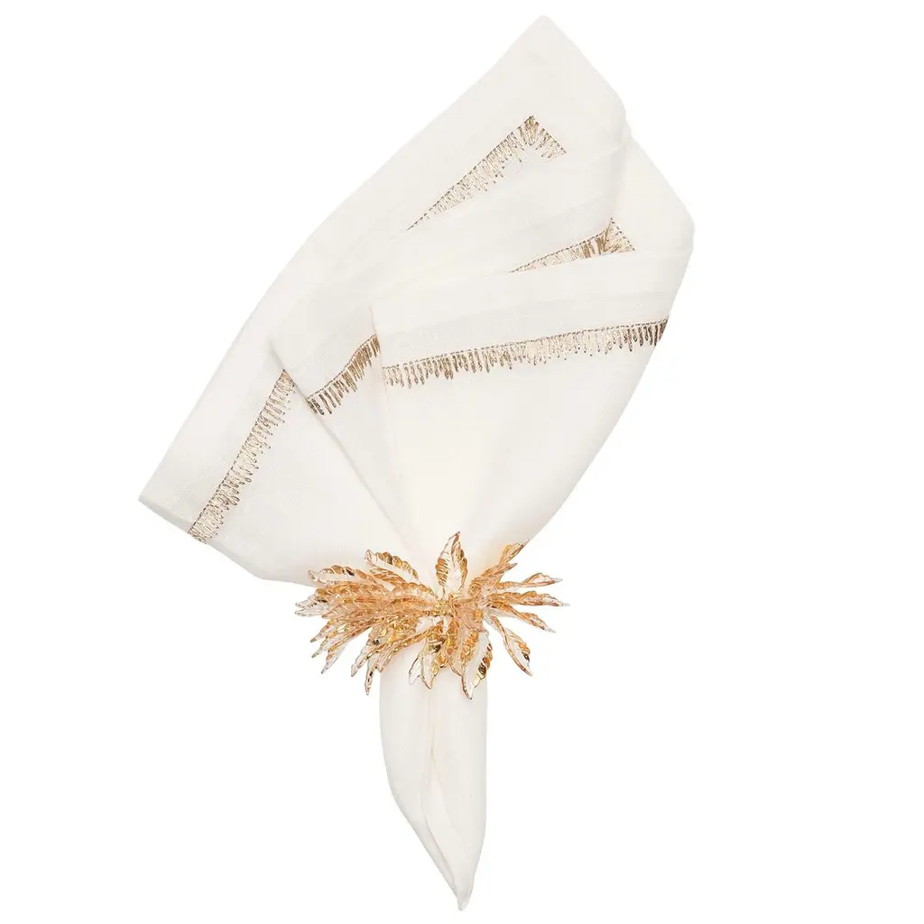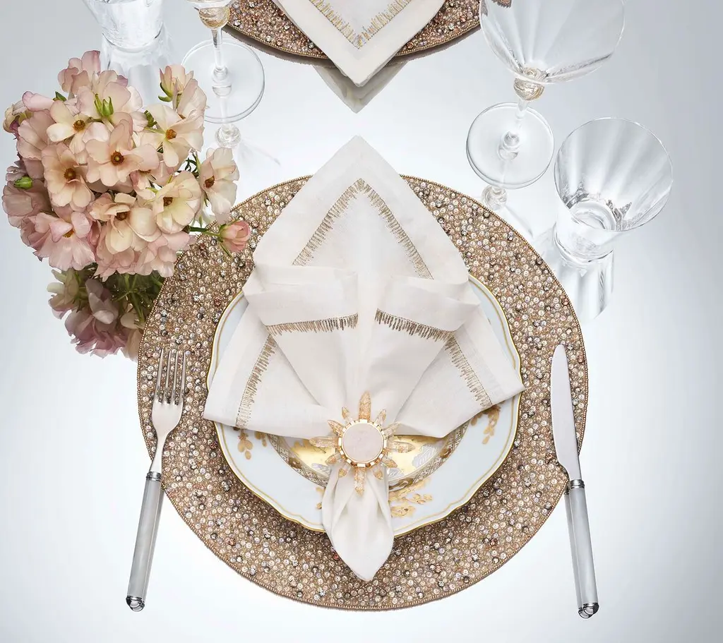 A fresh take on the classic, crisp white linen napkin, the linen Filament Napkin features long, floating embroidered stitching. These long stitches are reminiscent of the filaments in the center of a lightbulb and add a subtle elegance to any table.