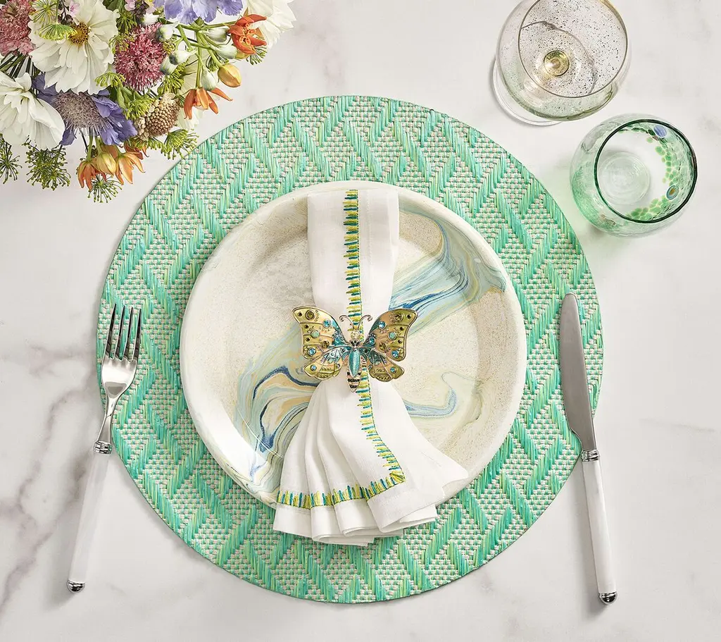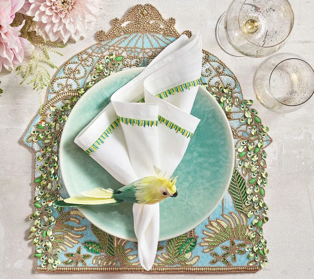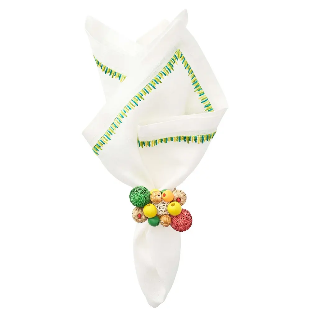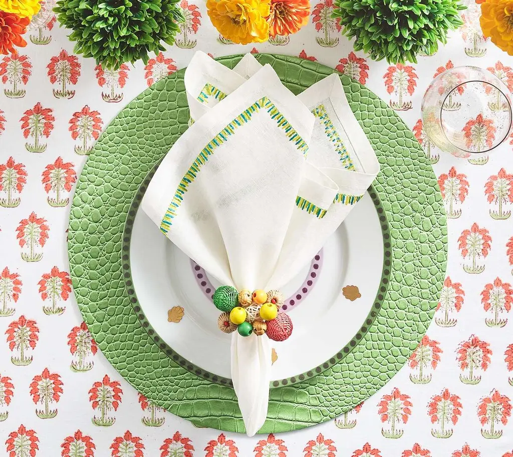 A fresh take on the classic, crisp white linen napkin, the linen Filament Napkin features long, floating embroidered stitching. These long stitches are reminiscent of the filaments in the center of a lightbulb and add a subtle elegance to any table.