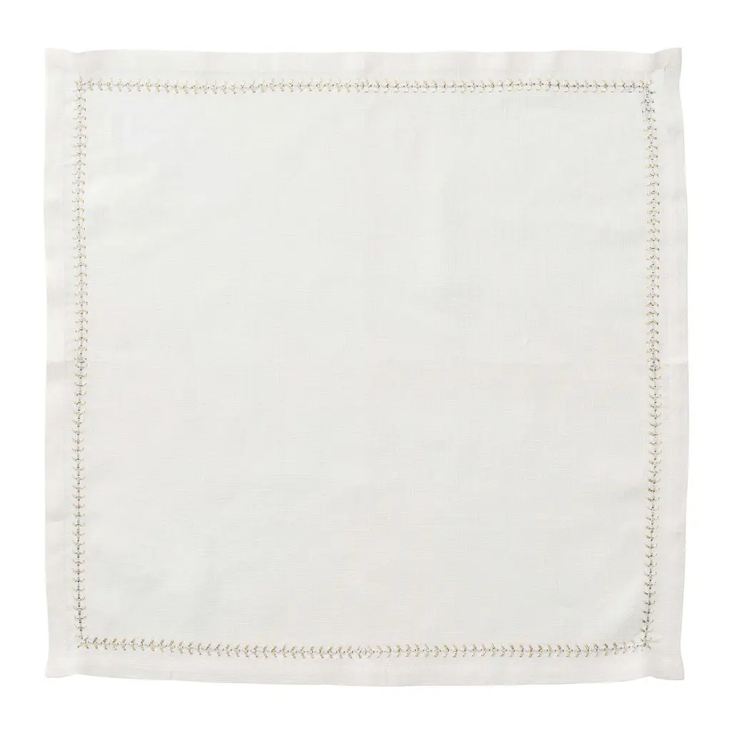 S/4 Herringbone Napkins, White, Gold & Silver