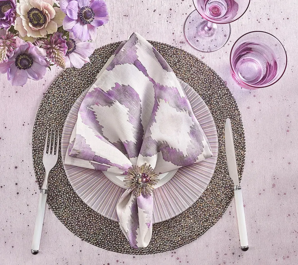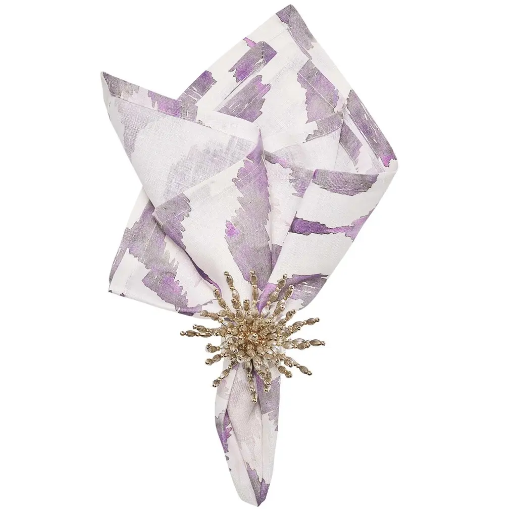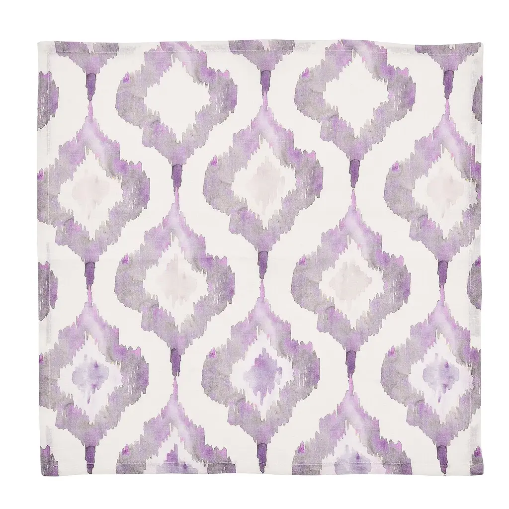The Watercolor Ikat Napkin features a modern take on the traditional Indonesian Ikat pattern. A hand-painted Ikat pattern is printed digitally on the linen napkin.