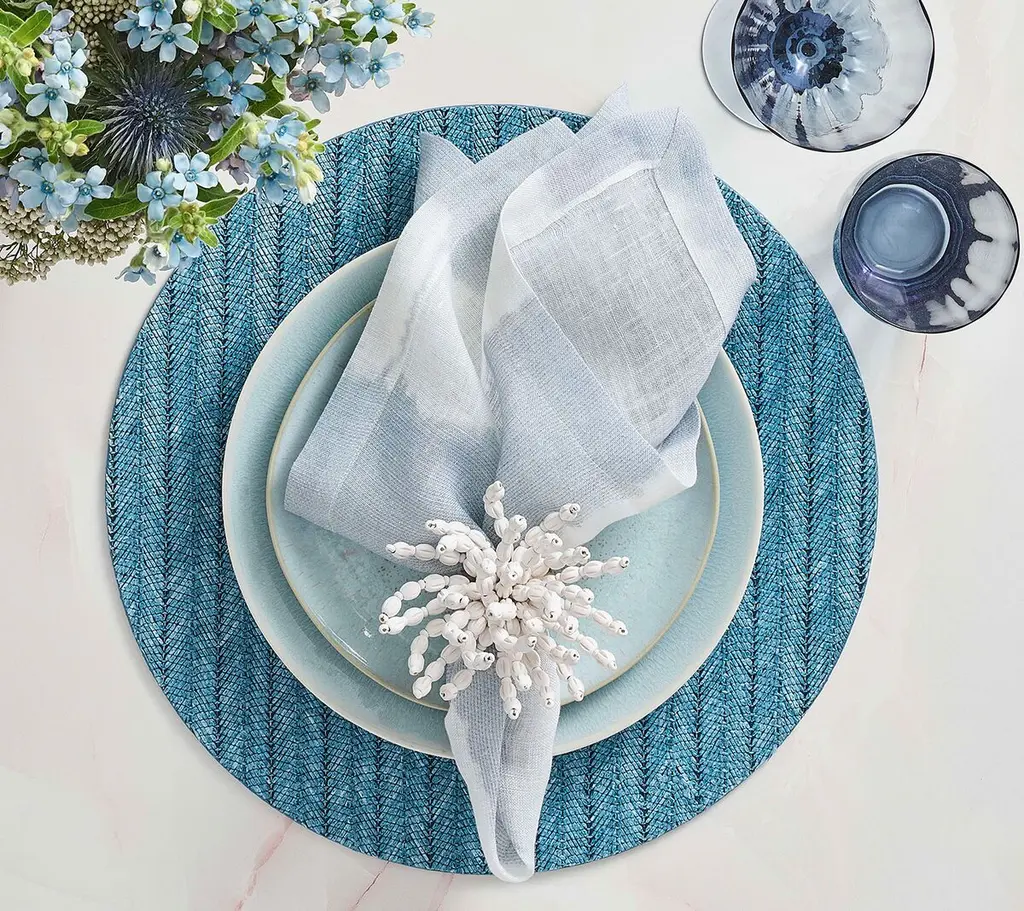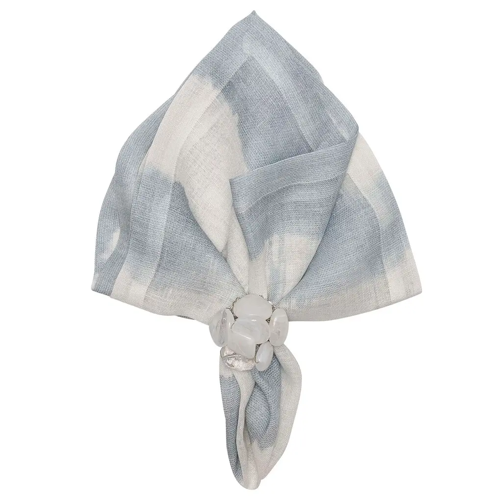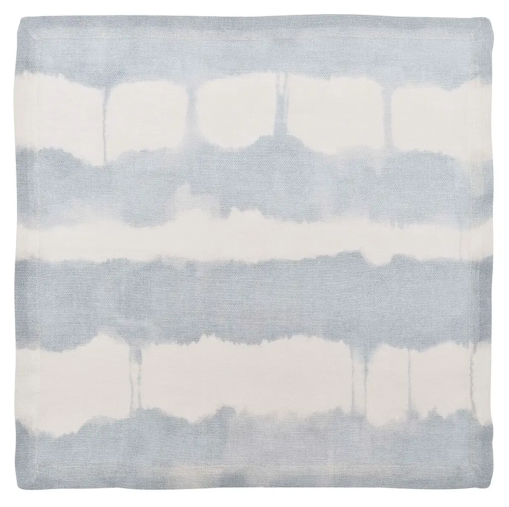 The Watercolor napkin is a soft and ethereal addition to your summer table. Its sheer gauzy fabric showcases a digitally printed watercolor stripe, where gentle strokes blend into the sheer white napkin. This versatile piece can be dressed up with a napkin ring or allowed to stand elegantly on its own, offering a light and airy touch to any summer dining experience.