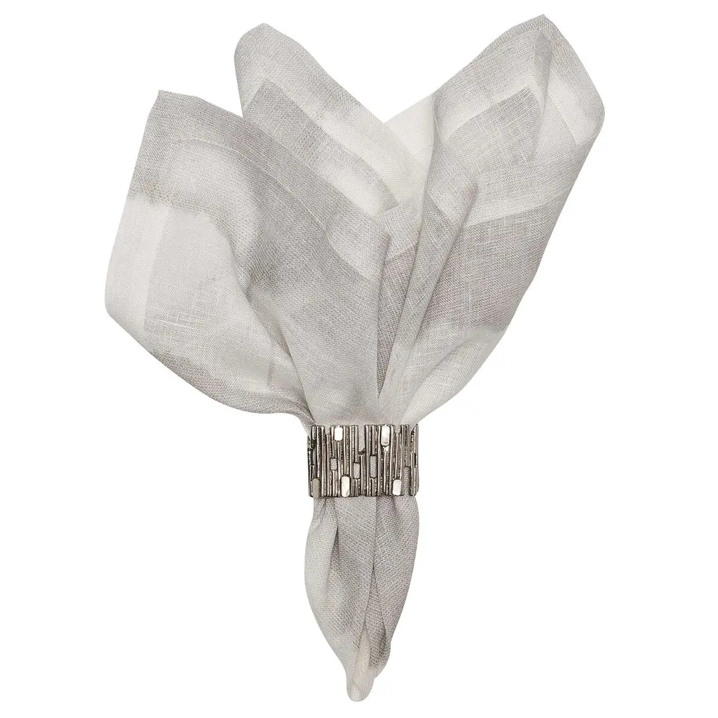 The Watercolor napkin is a soft and ethereal addition to your summer table. Its sheer gauzy fabric showcases a digitally printed watercolor stripe, where gentle strokes blend into the sheer white napkin. This versatile piece can be dressed up with a napkin ring or allowed to stand elegantly on its own, offering a light and airy touch to any summer dining experience.