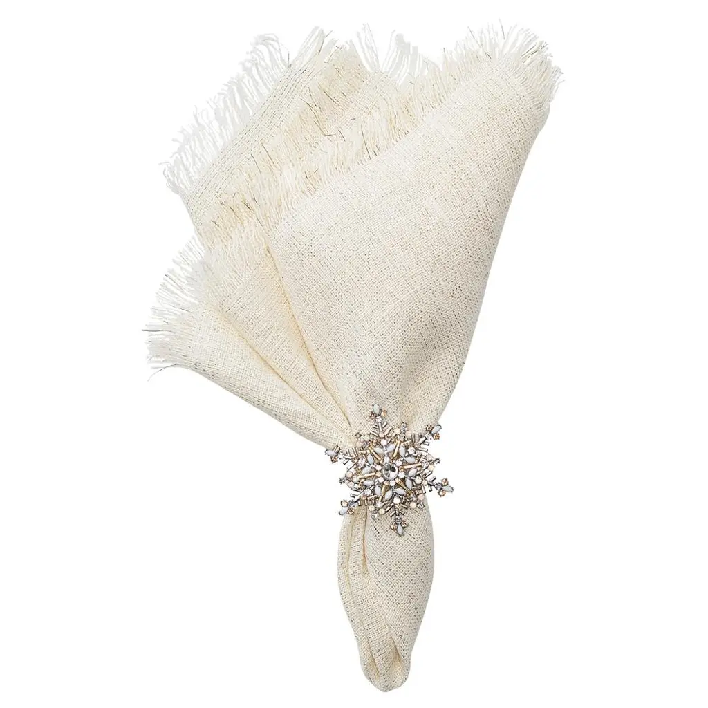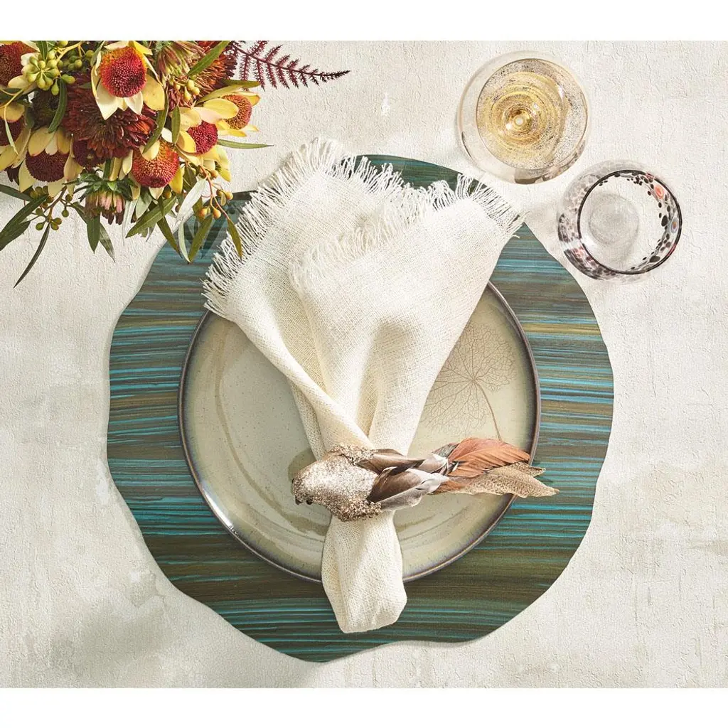 Sarah Fringe Coastal Beach White Linen Napkin - Set Of 4