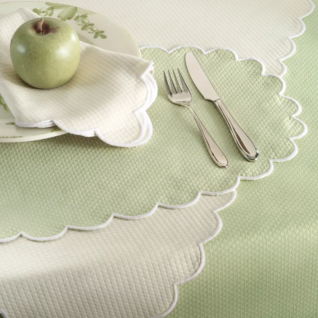 Featuring a timeless diamond pique and finished with scalloped edges, this classic collection of Savannah Gardens by Matouk is an elegant addition to any table setting.
