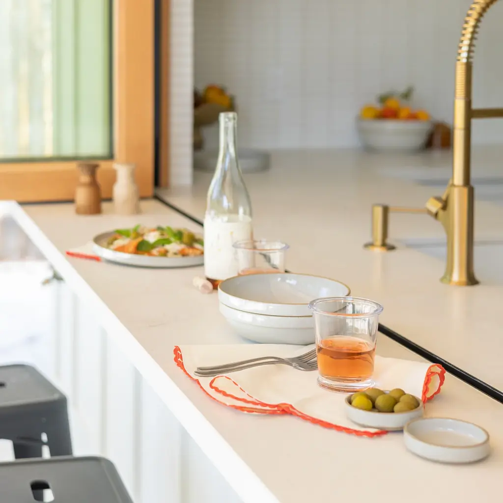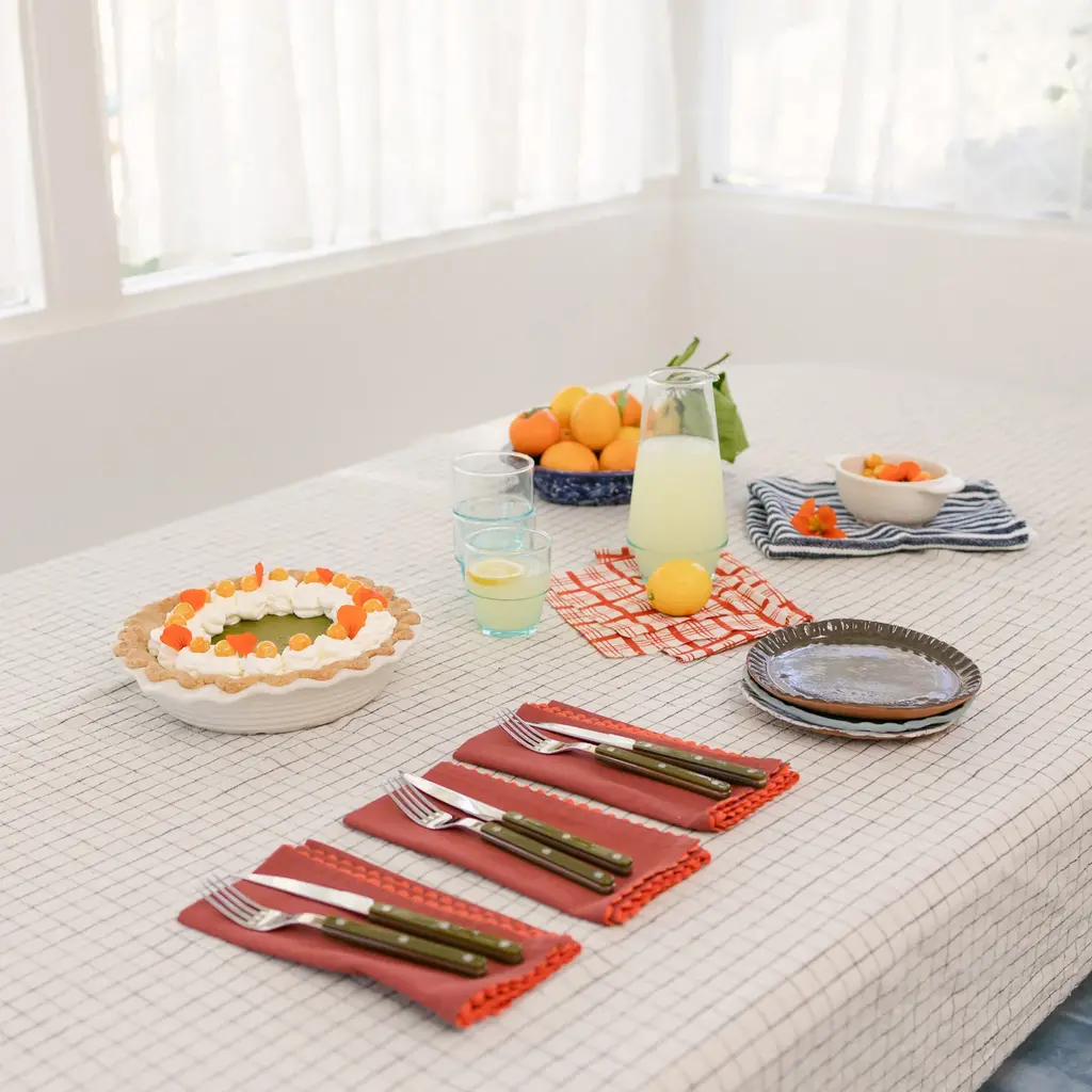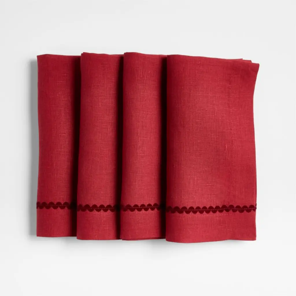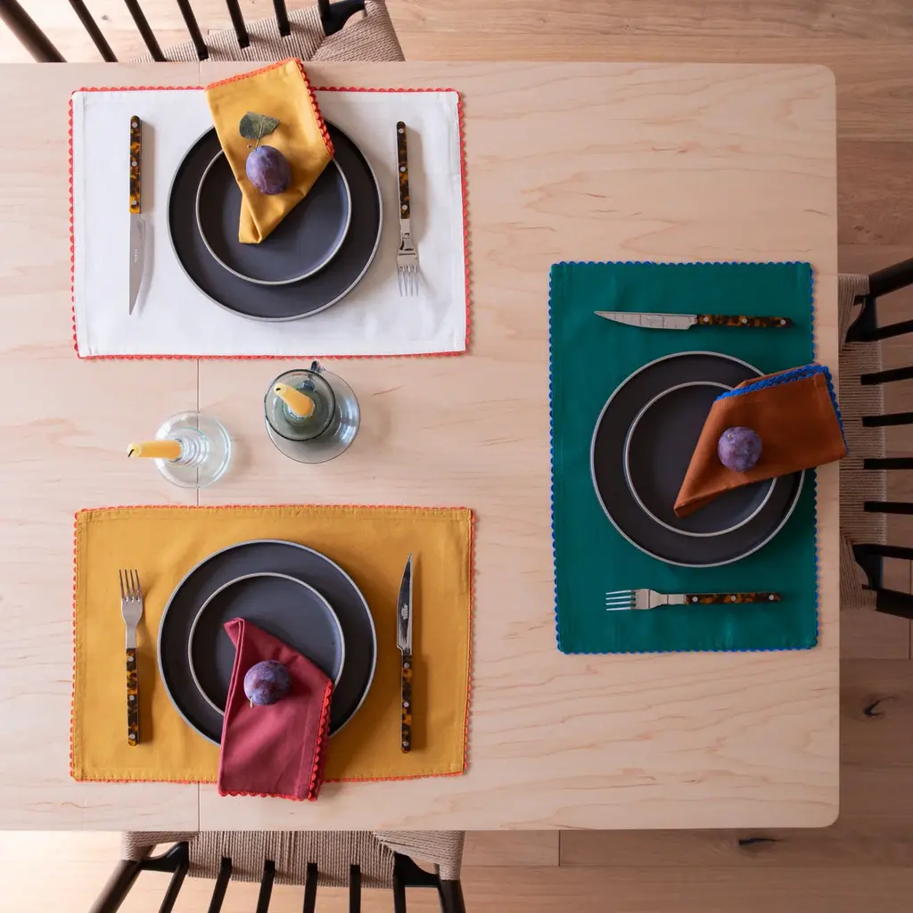 Liven up your table with this sweet and simple Scallop Trim Napkin Set. Made from a cotton linen blend for long lasting durability, these ricrac edged napkins add colorful character while infusing the home with a touch of nostalgia. Pair it with our Enamelware Collection for a bold tonal look or keep things classic by styling it with existing neutrals - the creative possibilities of this timeless textile are endless.