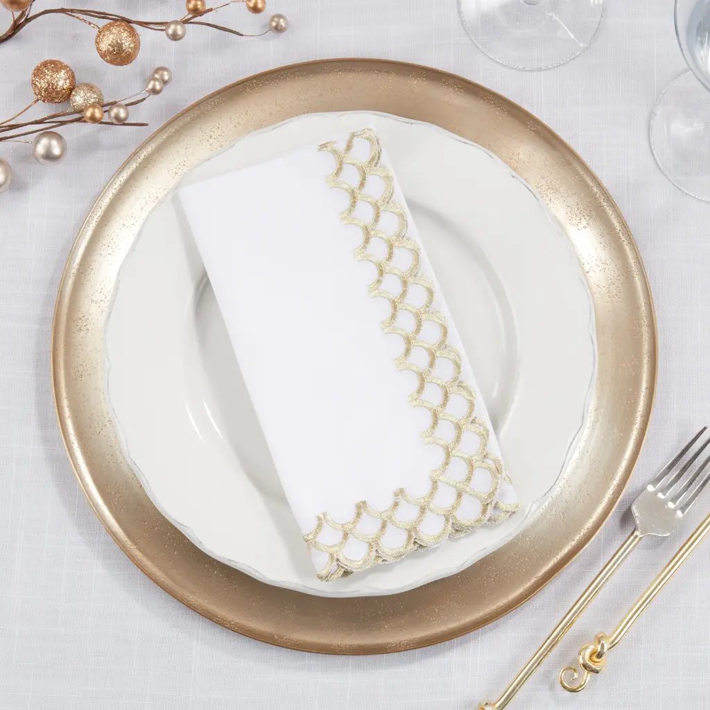 Introducing the Scalloped Edge Napkins - where every meal becomes an exquisite affair. The delicate scalloped border adds a touch of timeless elegance to your table setting. Crafted with precision and designed for versatility, these napkins are the perfect choice for adding a hint of sophistication to any occasion. Elevate your dining experience with Scalloped Edge Napkins and make each meal a memorable event.