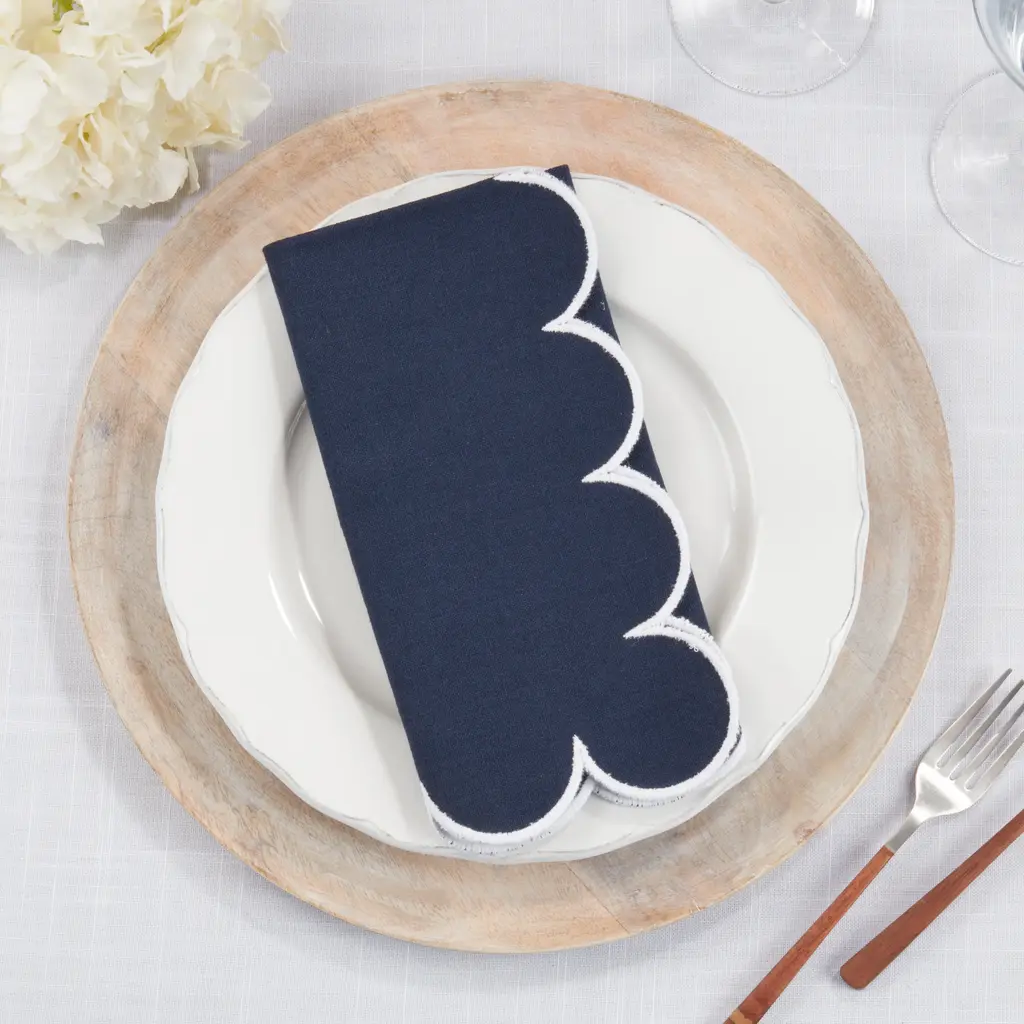 Infuse elegance into your table setting with the Scalloped Hem Napkins. The delicate scalloped edges bring a touch of sophistication to every meal. Elevate your dining experience with these timeless and refined napkins.