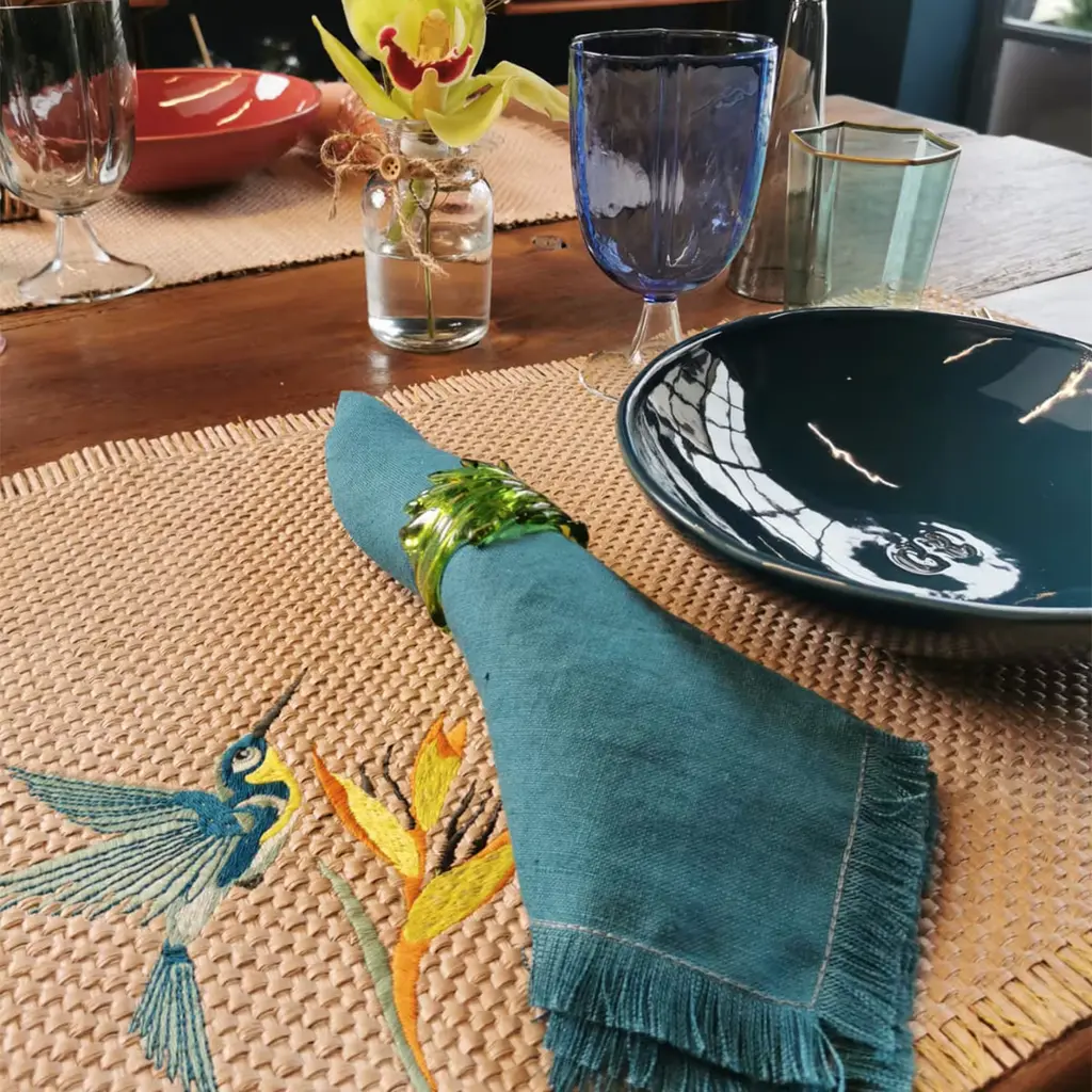 The Luxury of these hand-fringed pure linen napkins increase the charm of every table. They represent a distinctive and extra detail that makes the table unique and matches with tablecloths, placemats and napkin rings from the same Casarialto line. Handmade in Italy with italian yarns.