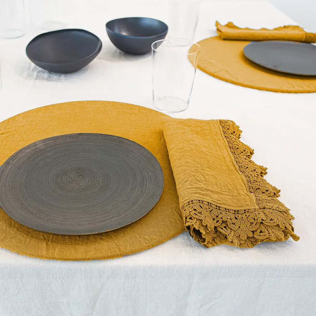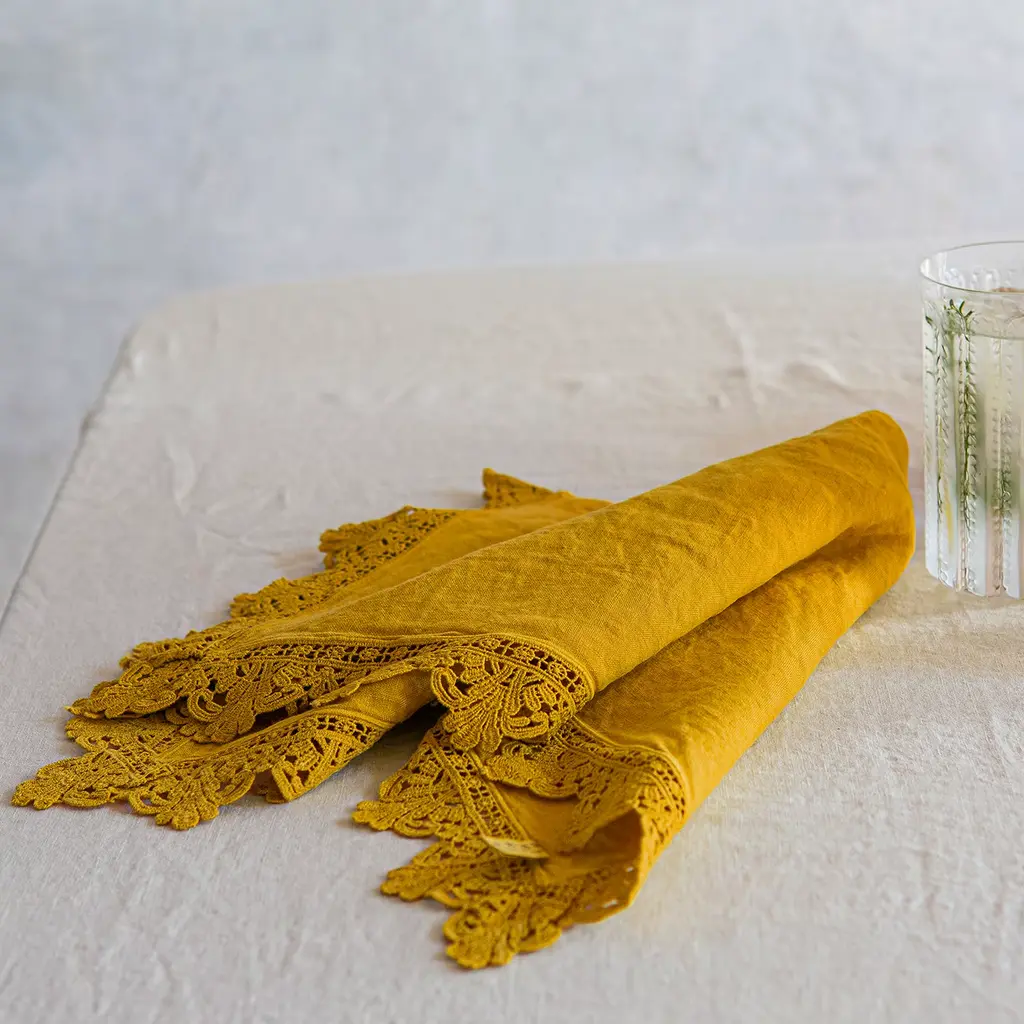 These unique Sicily napkins celebrate the rich cultural heritage of this island, once the crossroads of Europe. The detailed lace adds a sophisticated, handcrafted touch to the table. Available in a wide range of colors, perfect for any special occasion and to enhance your collection.