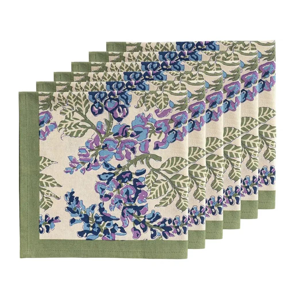Set Of Six Napkins In Colorful Wildflower Print In Blue And Multicolor