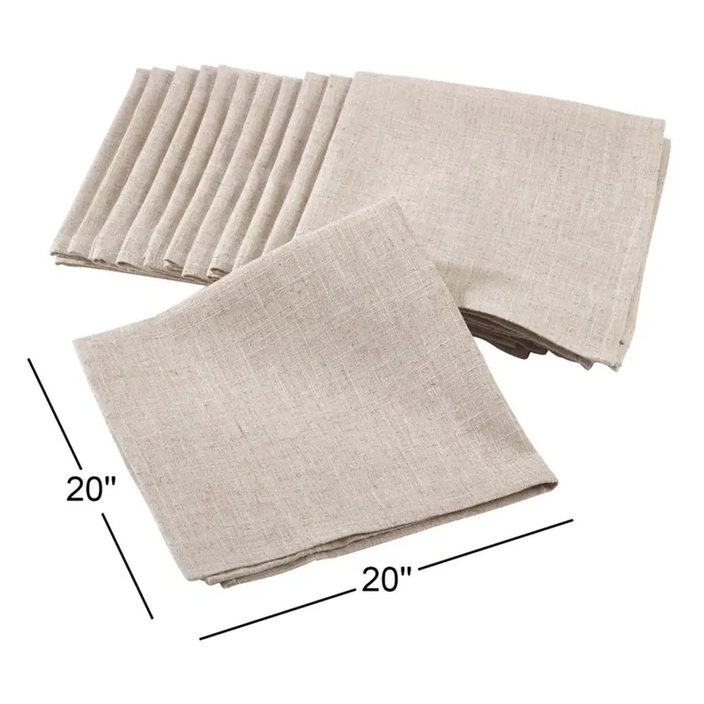 The breezy charm of natural linen makes this 12-piece napkin set just right for your farmhouse dining room table. Each one is crafted from a linen-poly blend in a textured, natural beige color, with a 20'' square silhouette and plenty of charming texture. They're just right for protecting your table from spots and spills when company comes over for a home-cooked meal. Best of all, these napkins are machine washable for easy after-dinner cleanup, and they're even iron safe, so you can tackle tricky wrinkles with ease.